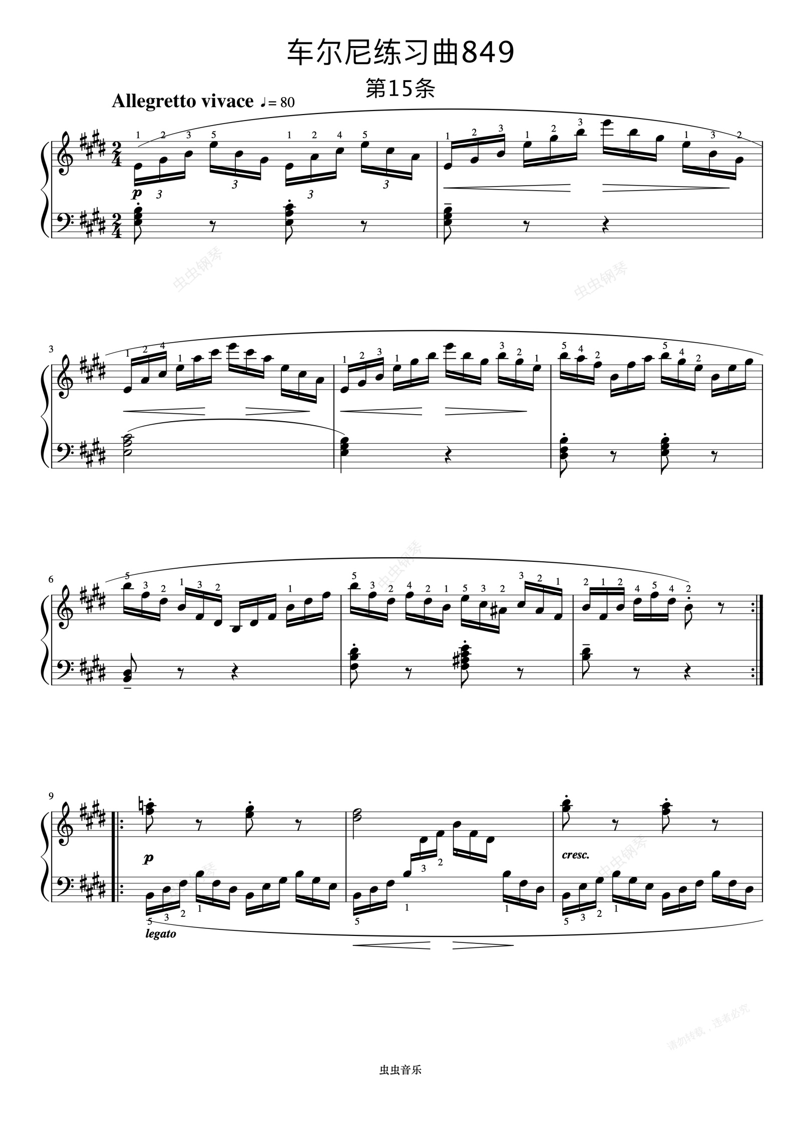 钢琴谱:第15首《车尔尼钢琴流畅练习曲 作品849》