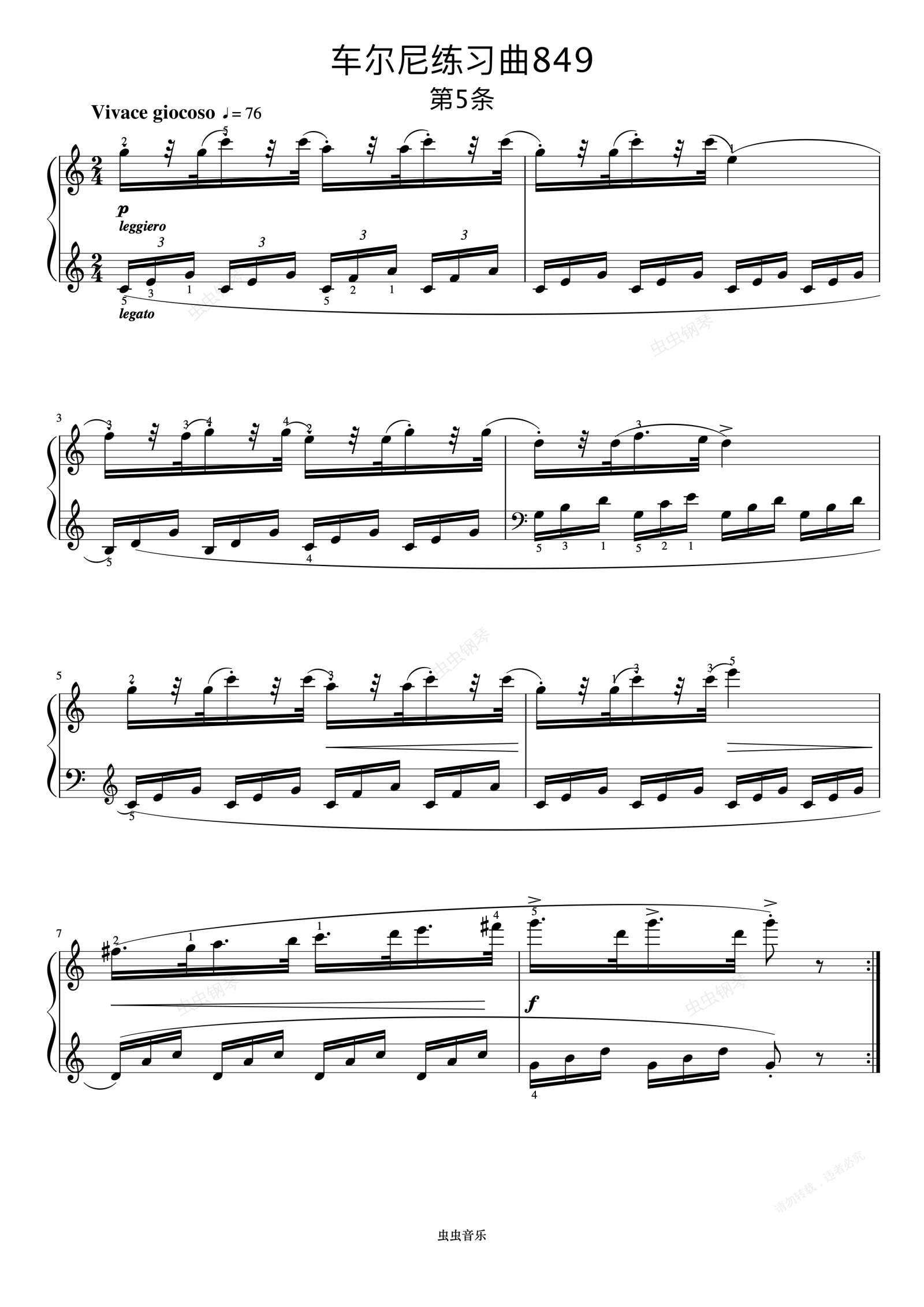 钢琴谱:第5首《车尔尼钢琴流畅练习曲 作品849》