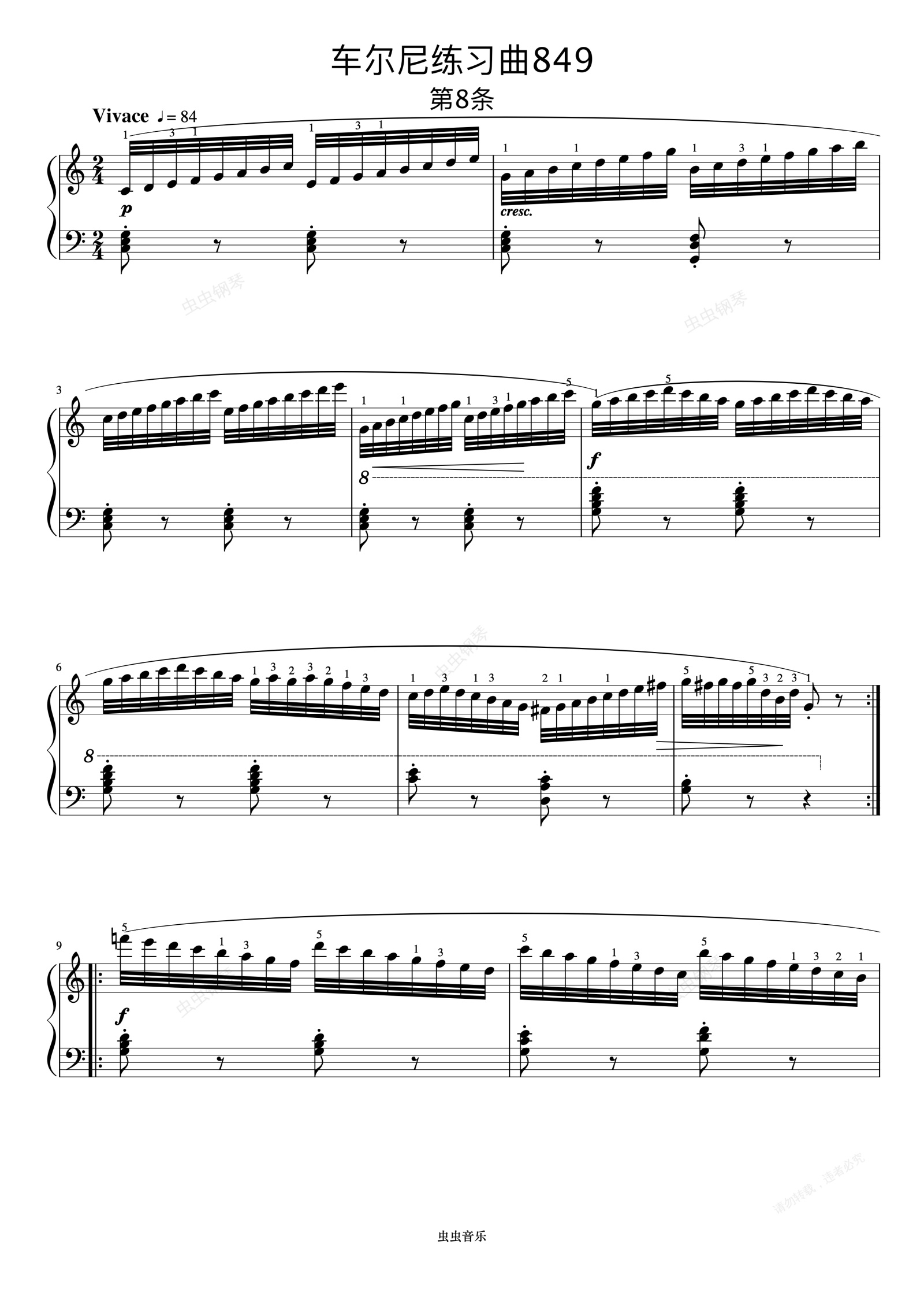 钢琴谱:第8首《车尔尼钢琴流畅练习曲 作品849》
