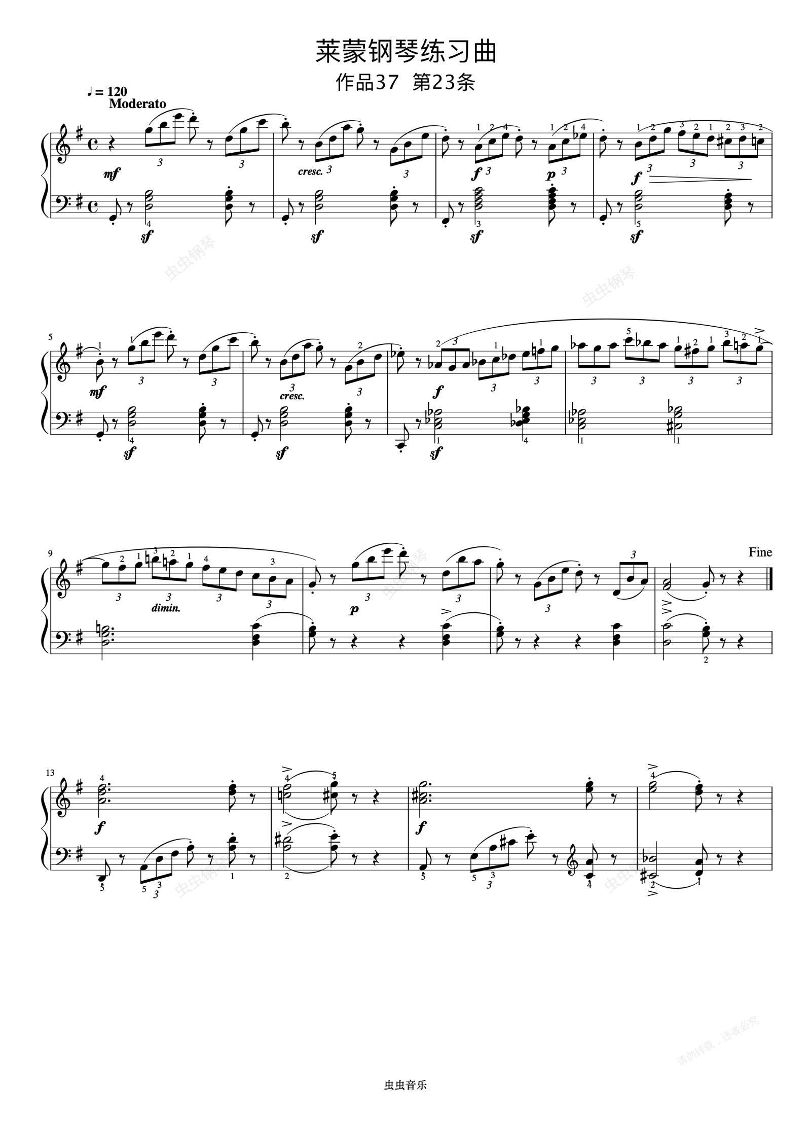 钢琴谱:第23首《莱蒙钢琴练习曲 作品37》