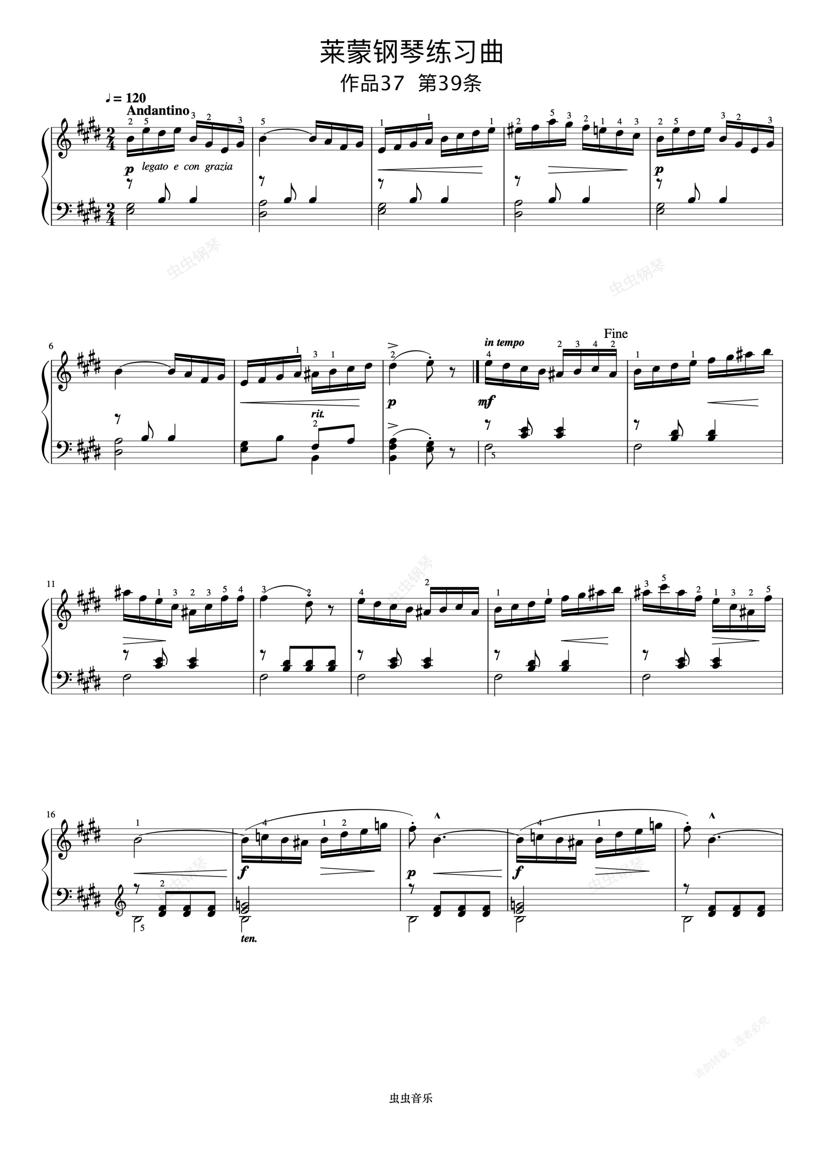 钢琴谱:第39首《莱蒙钢琴练习曲 作品37》