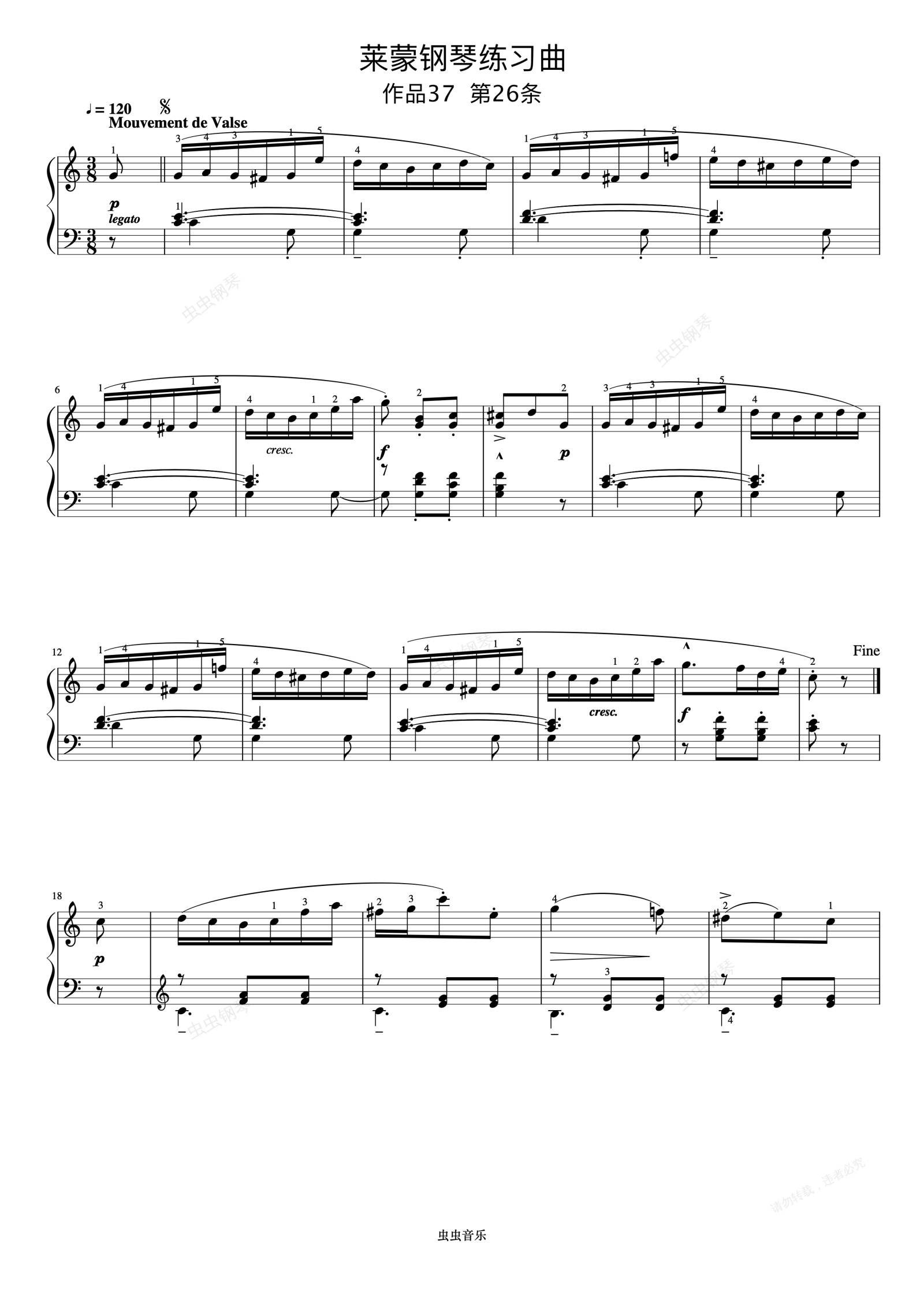 钢琴谱:第26首《莱蒙钢琴练习曲 作品37》