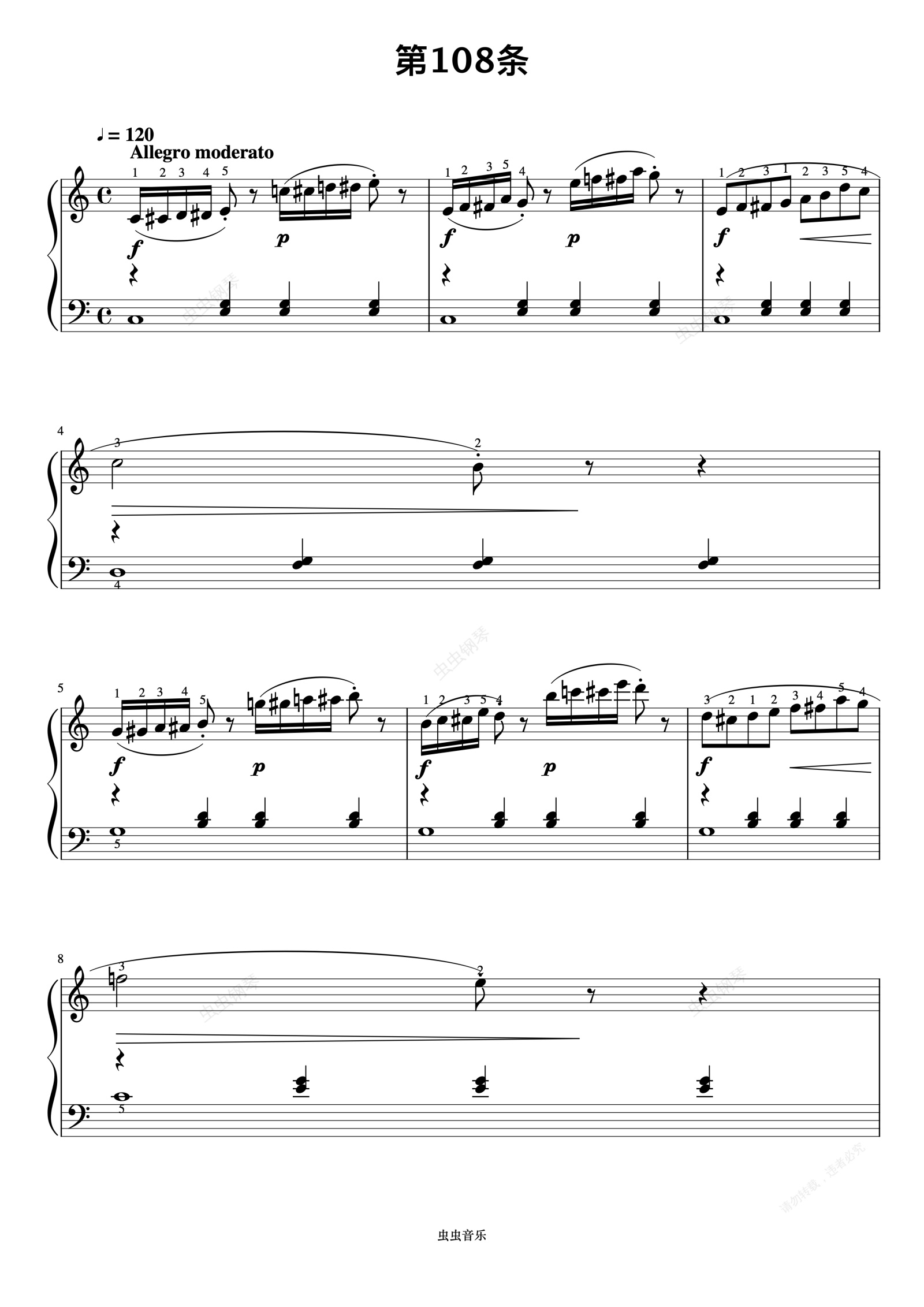钢琴谱:第108首《拜厄钢琴基础教程》