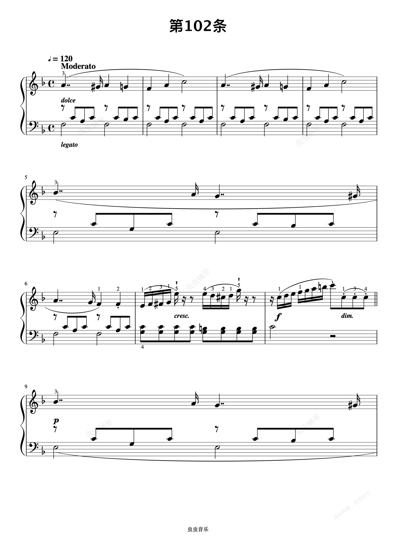 钢琴谱:第102首《拜厄钢琴基础教程》