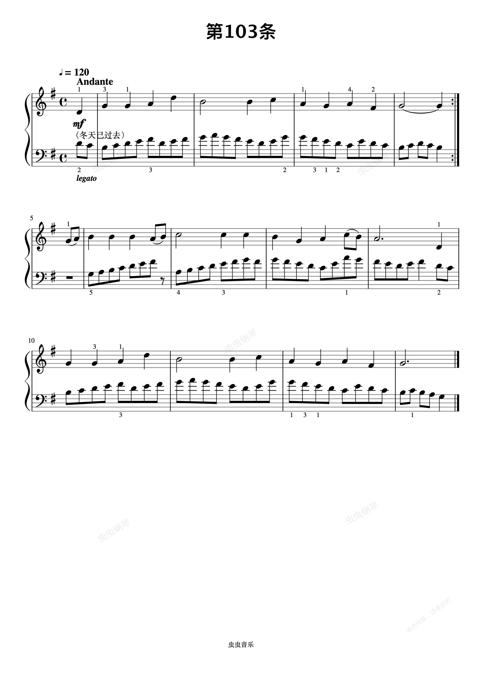 钢琴谱:第103首《拜厄钢琴基础教程》