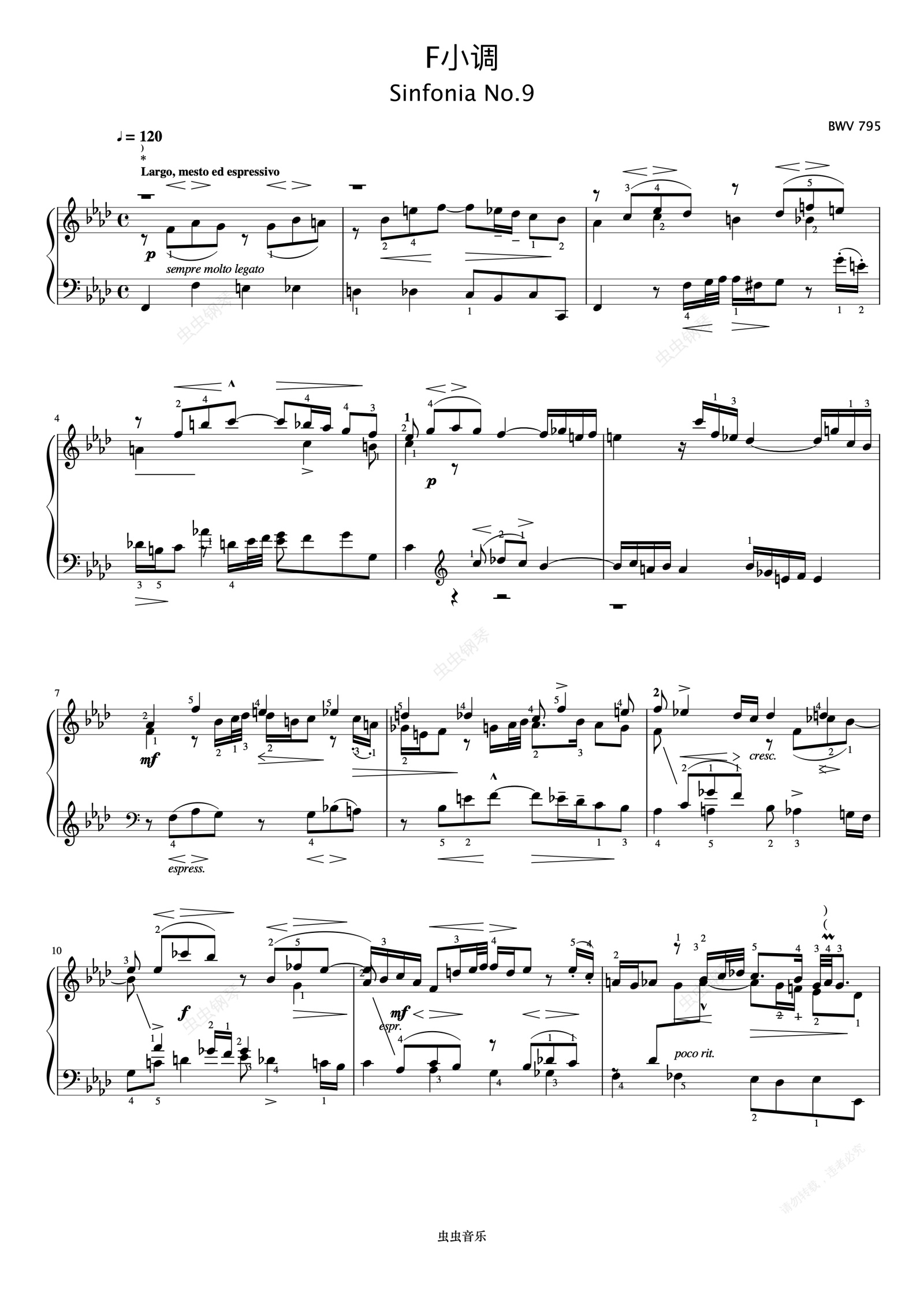 钢琴谱:三部创意曲No.9《巴赫 创意曲集》