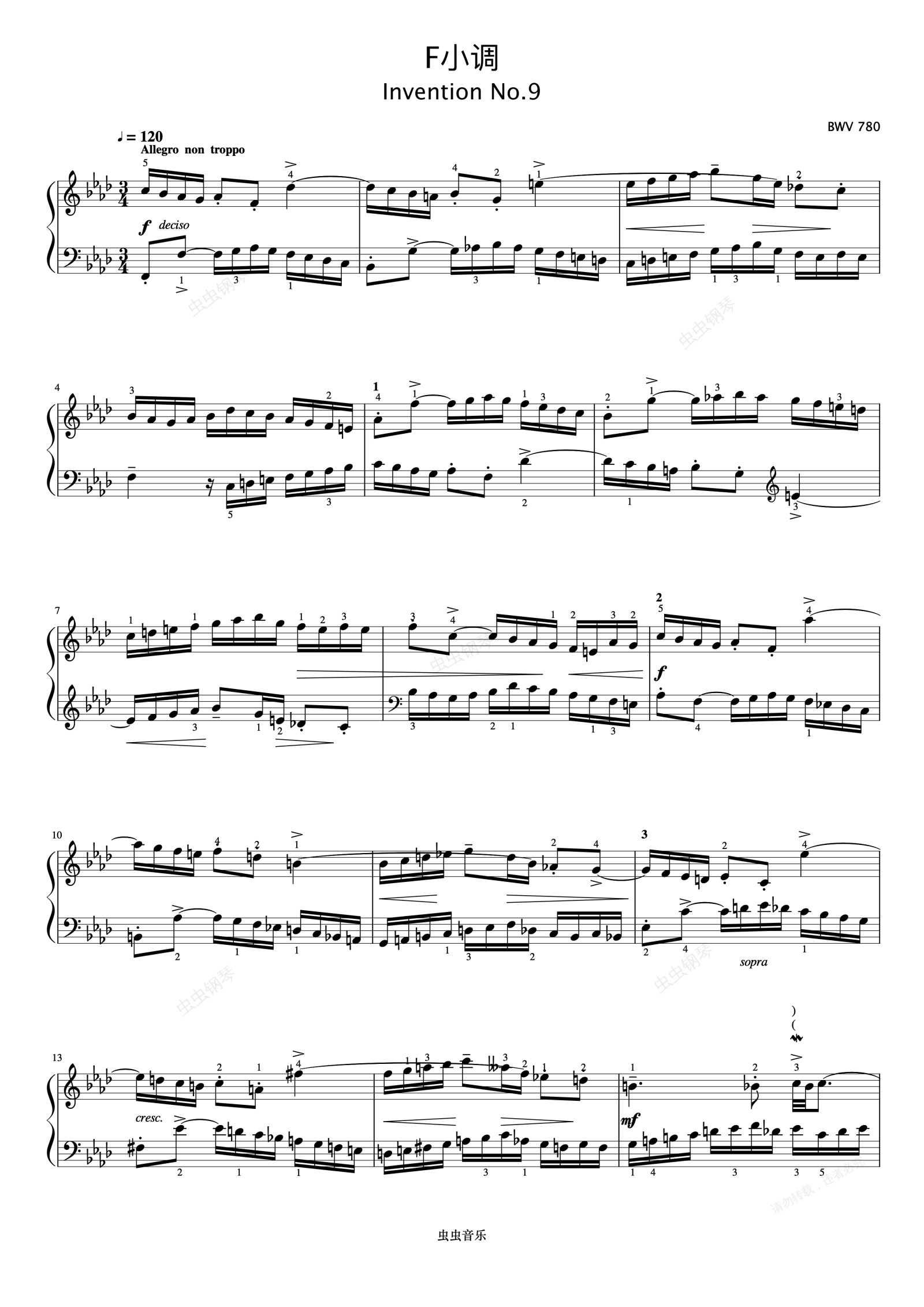 钢琴谱:二部创意曲No.9《巴赫 创意曲集》