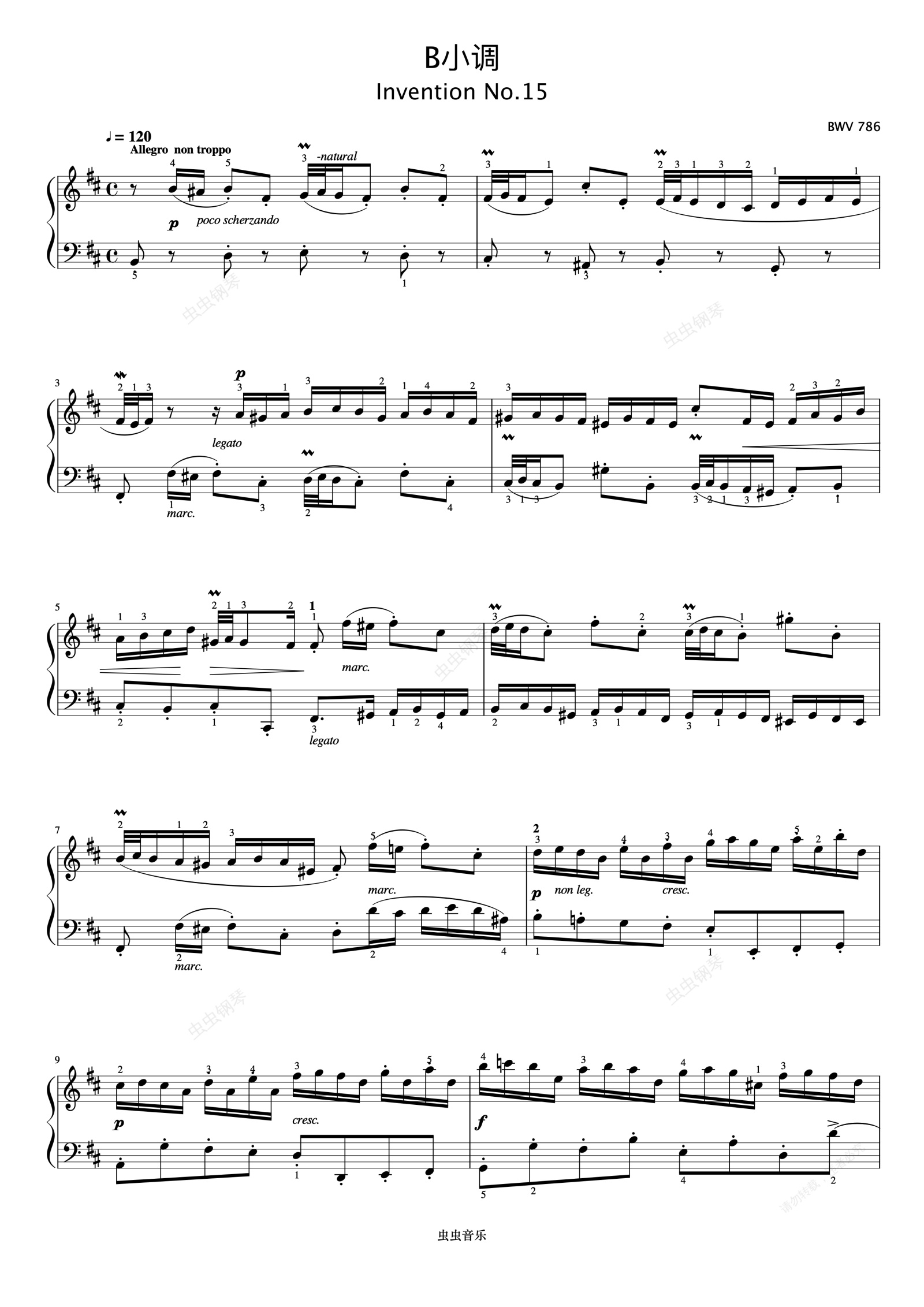 钢琴谱:二部创意曲No.15《巴赫 创意曲集》