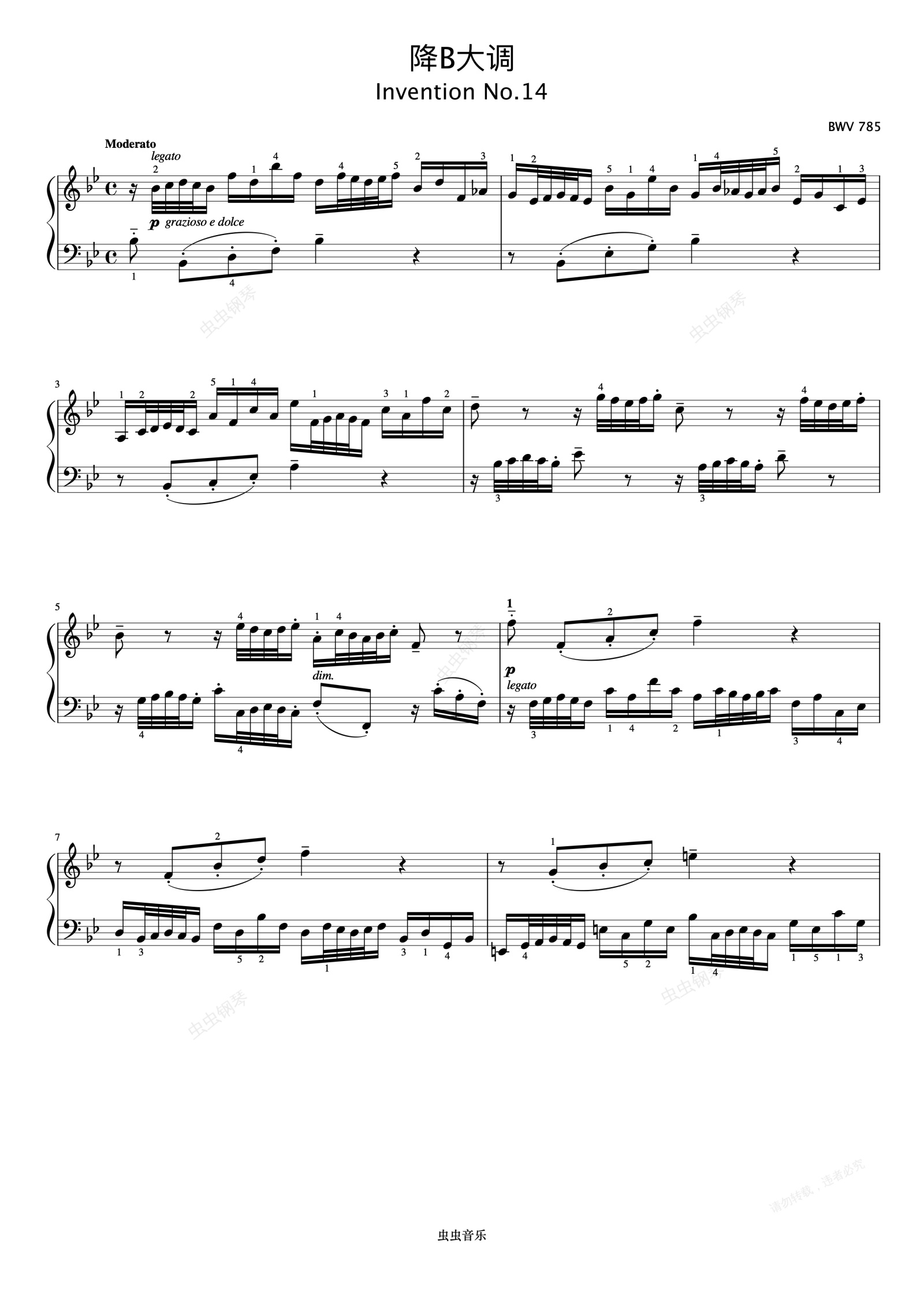 钢琴谱:二部创意曲No.14《巴赫 创意曲集》