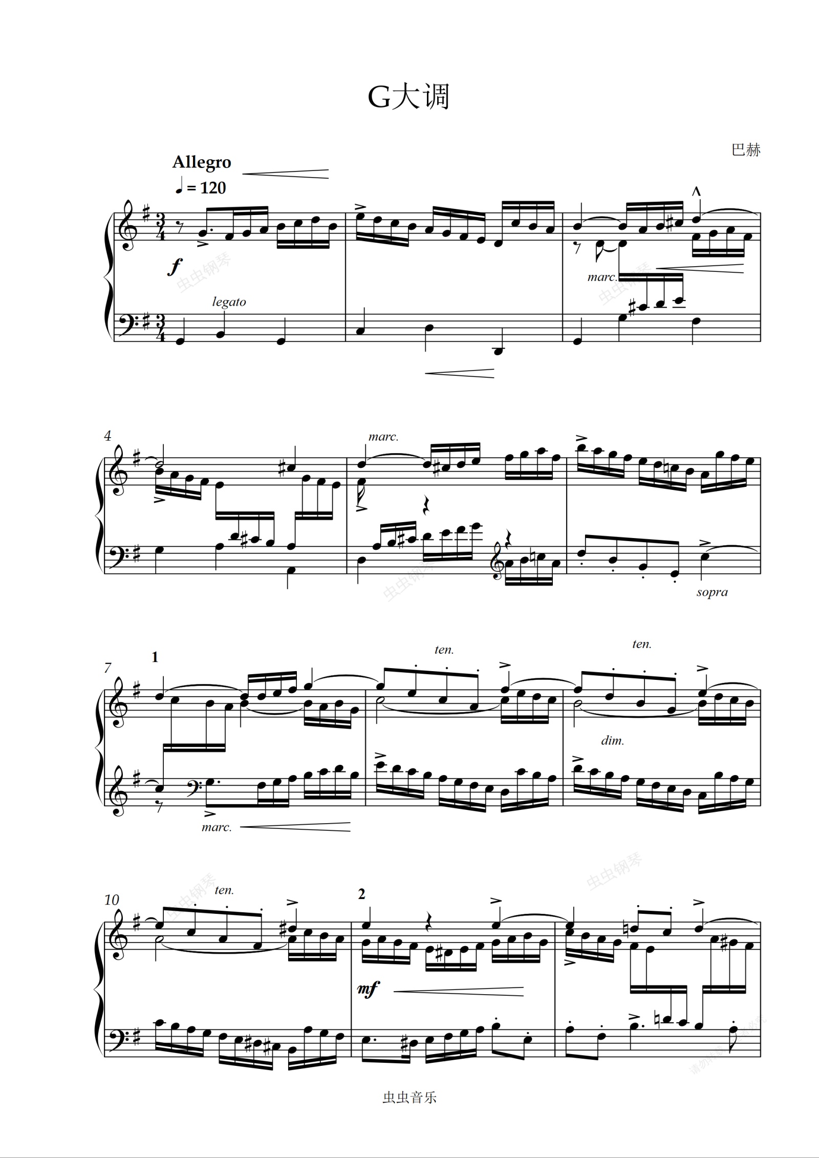 钢琴谱:三部创意曲No.10《巴赫 创意曲集》