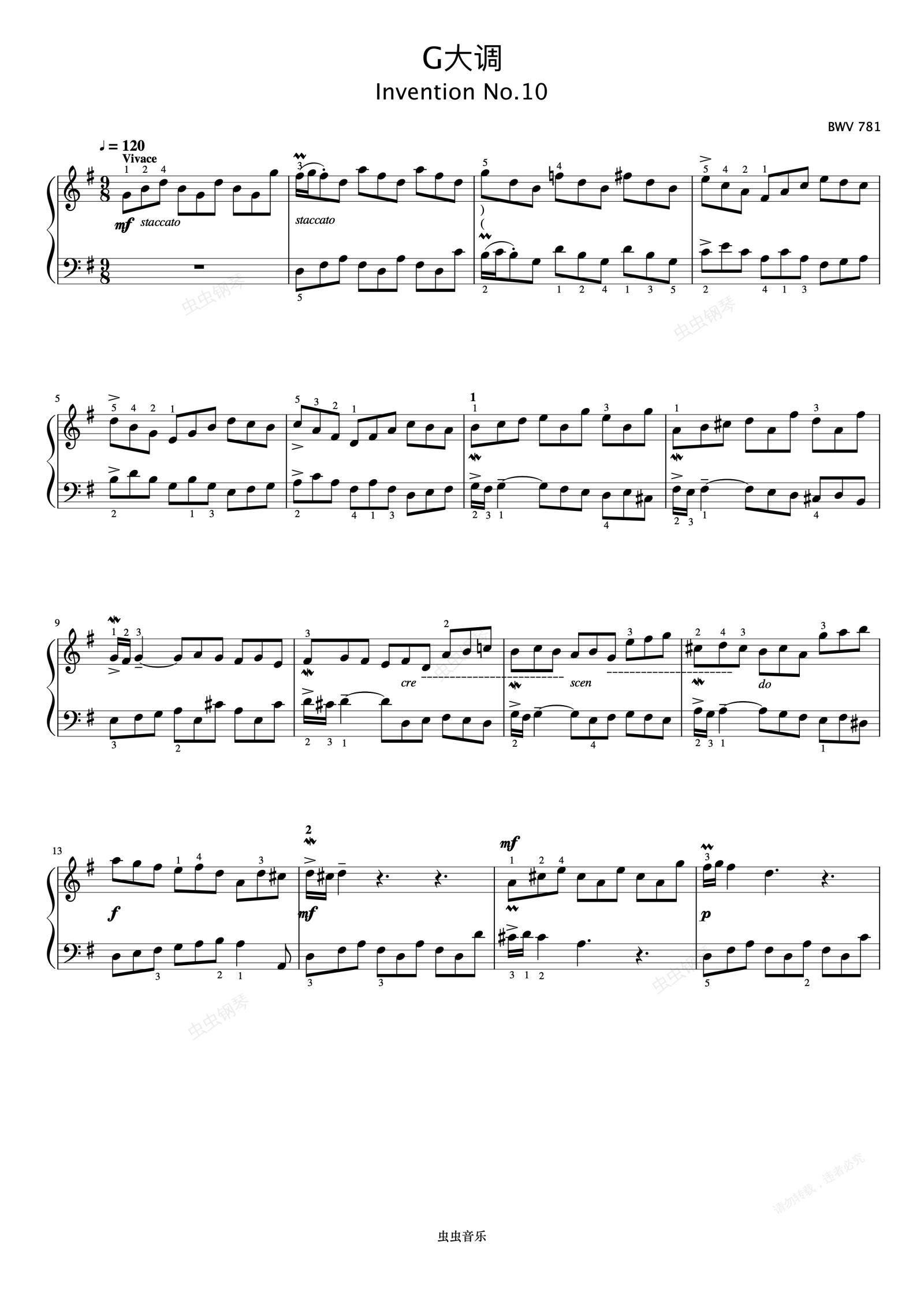 钢琴谱:二部创意曲No.10《巴赫 创意曲集》