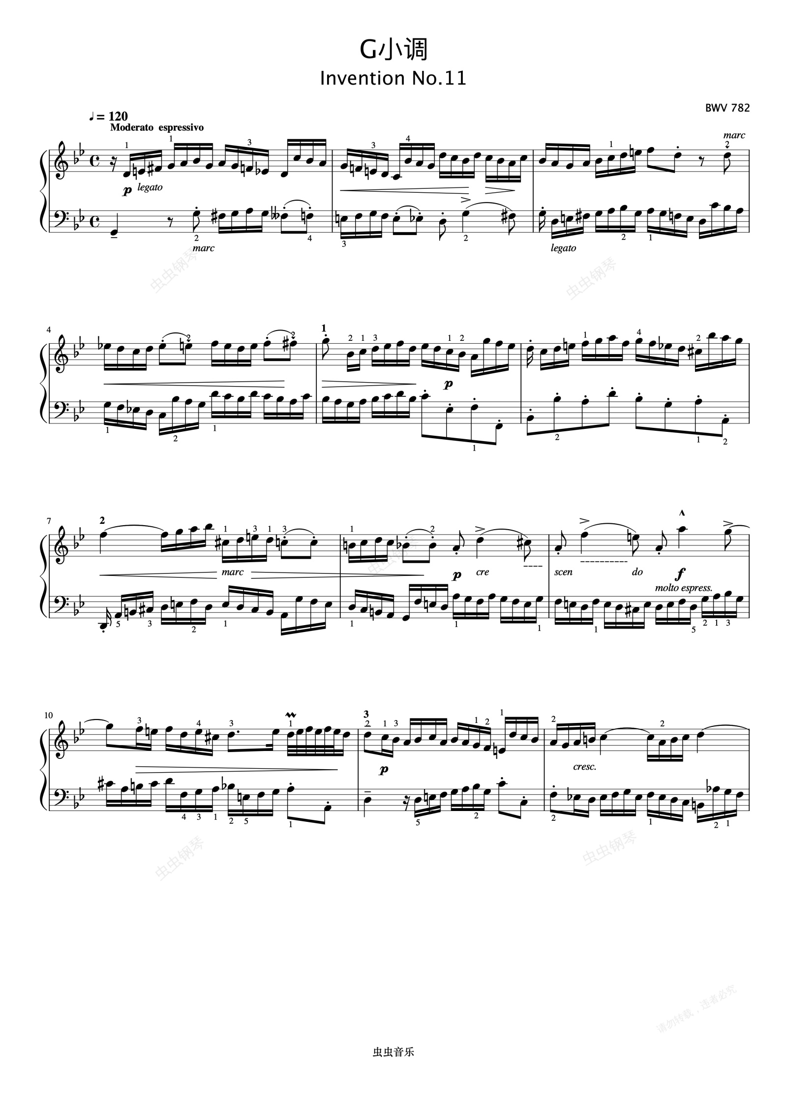 钢琴谱:二部创意曲No.11《巴赫 创意曲集》