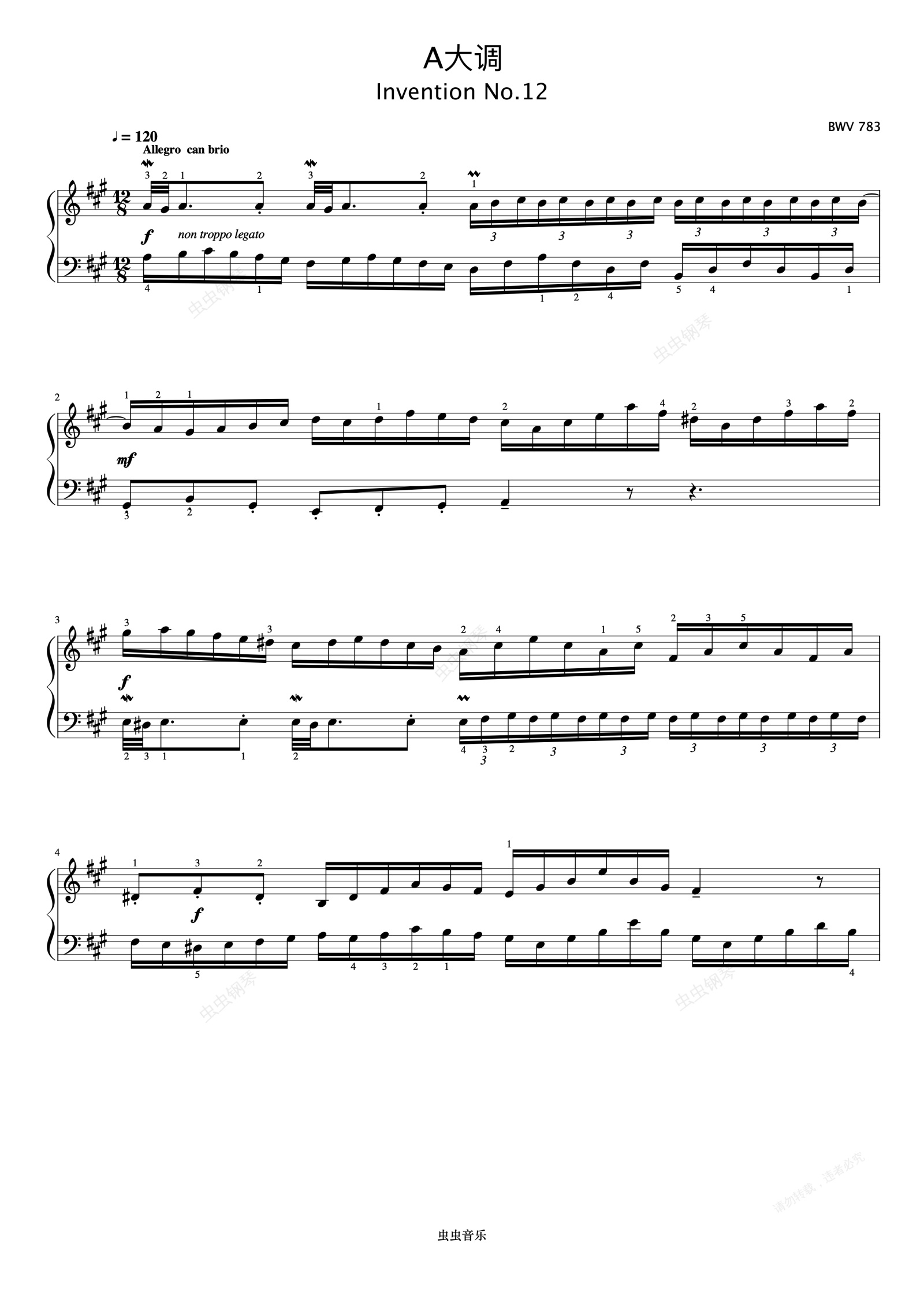 钢琴谱:二部创意曲No.12《巴赫 创意曲集》