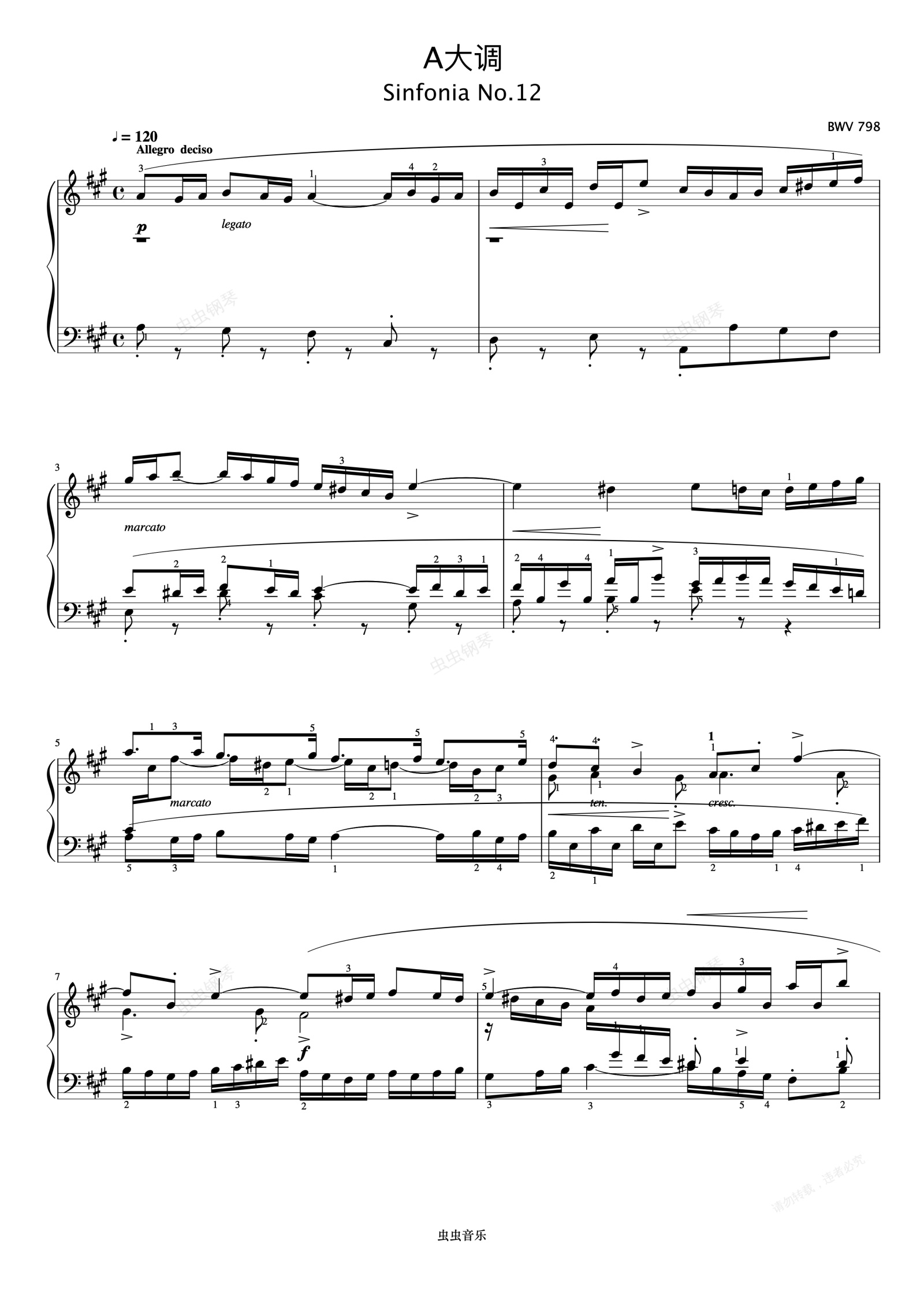 钢琴谱:三部创意曲No.12《巴赫 创意曲集》