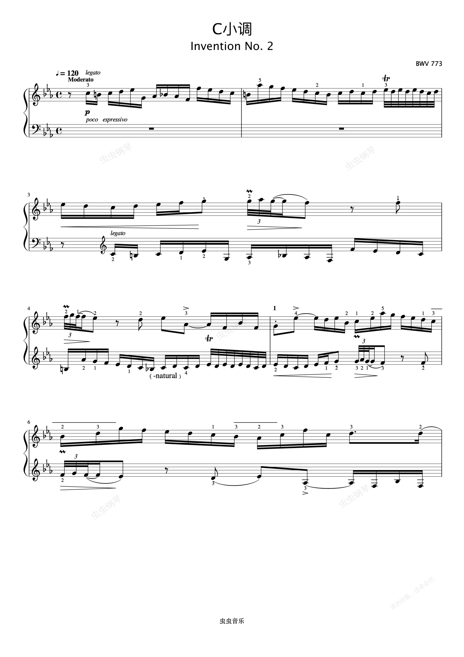 钢琴谱:二部创意曲No.2《巴赫 创意曲集》