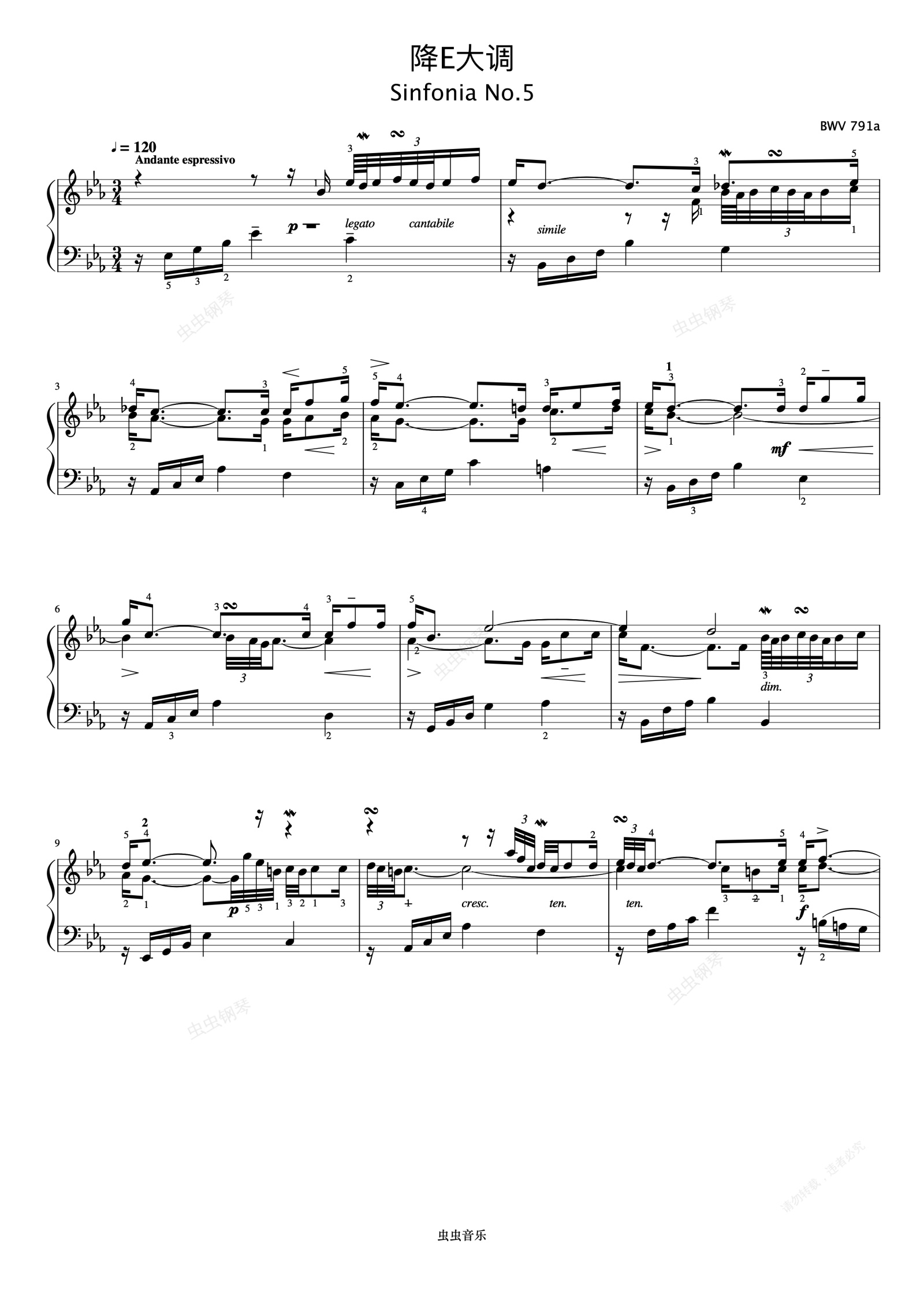 钢琴谱:三部创意曲No.5《巴赫 创意曲集》