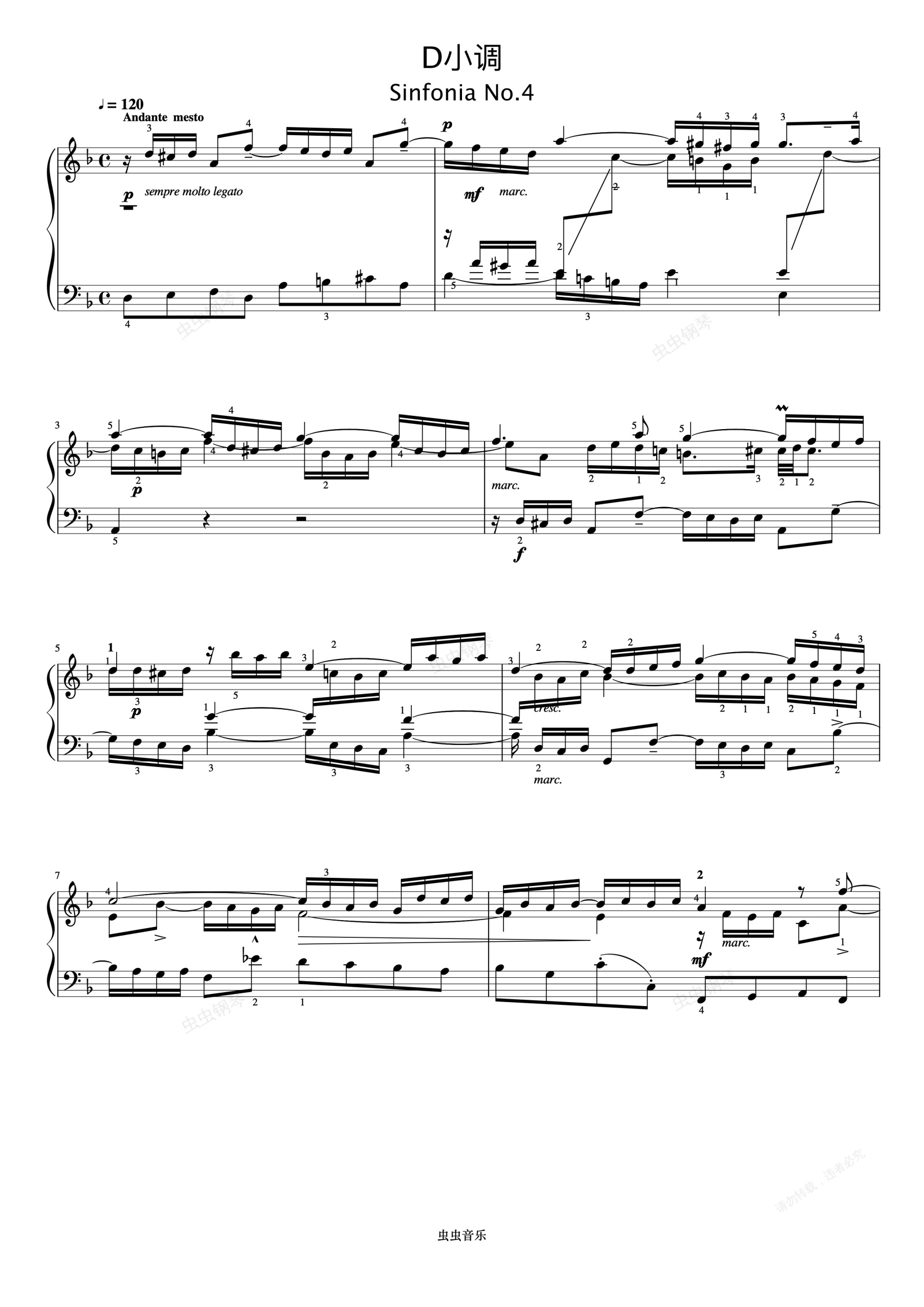 钢琴谱:三部创意曲No.4《巴赫 创意曲集》