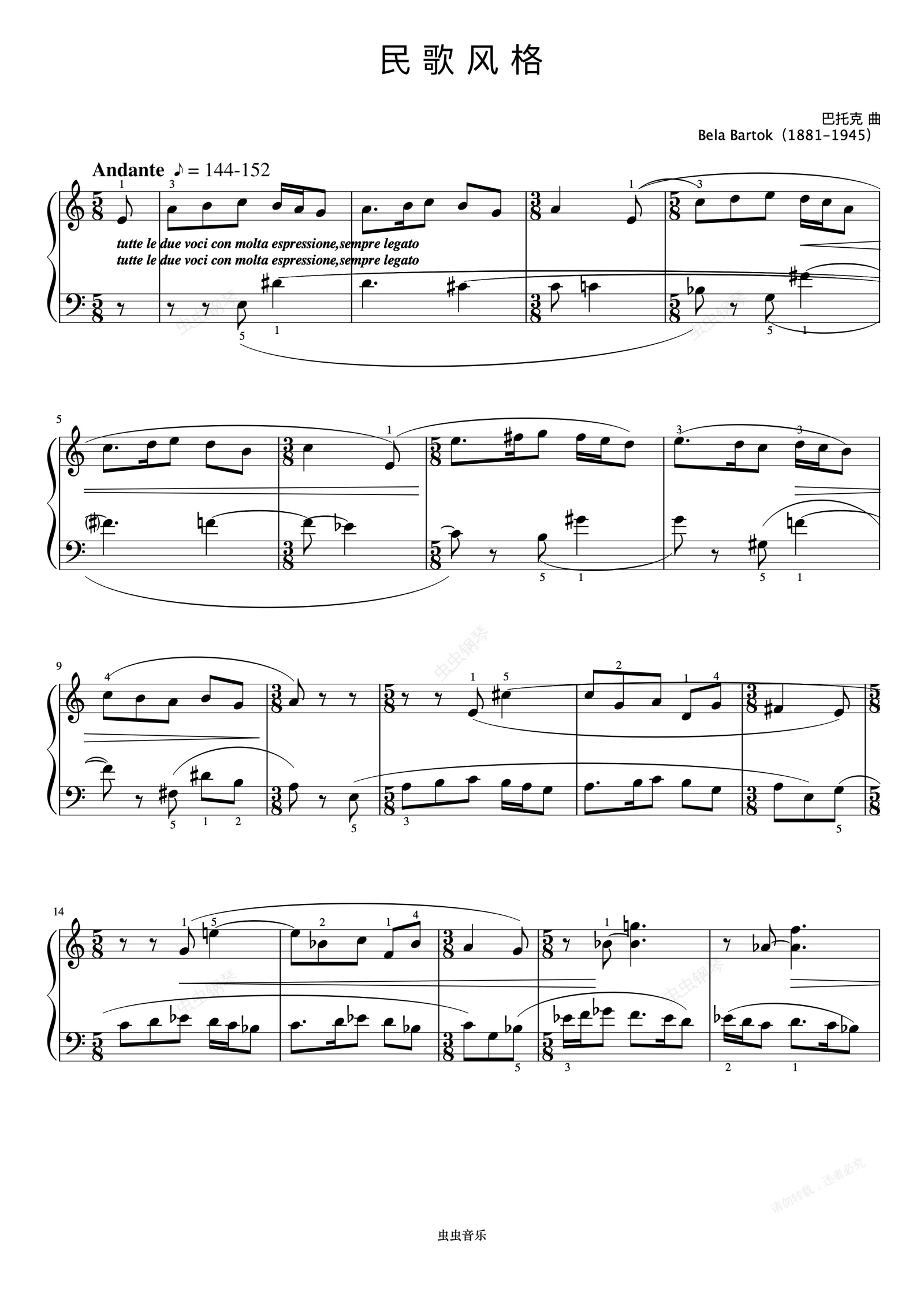 钢琴谱:5级 民歌风格《上音钢琴考级曲目》