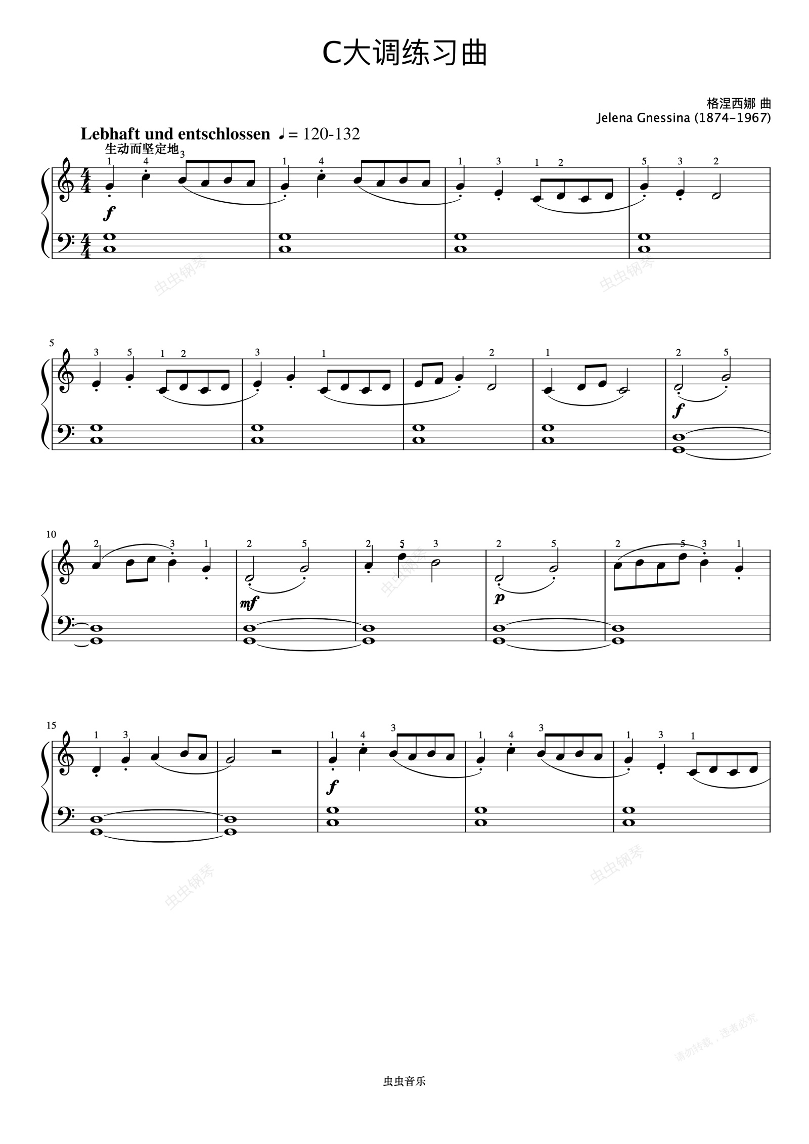 钢琴谱:1级 C大调练习曲《上音钢琴考级曲目》