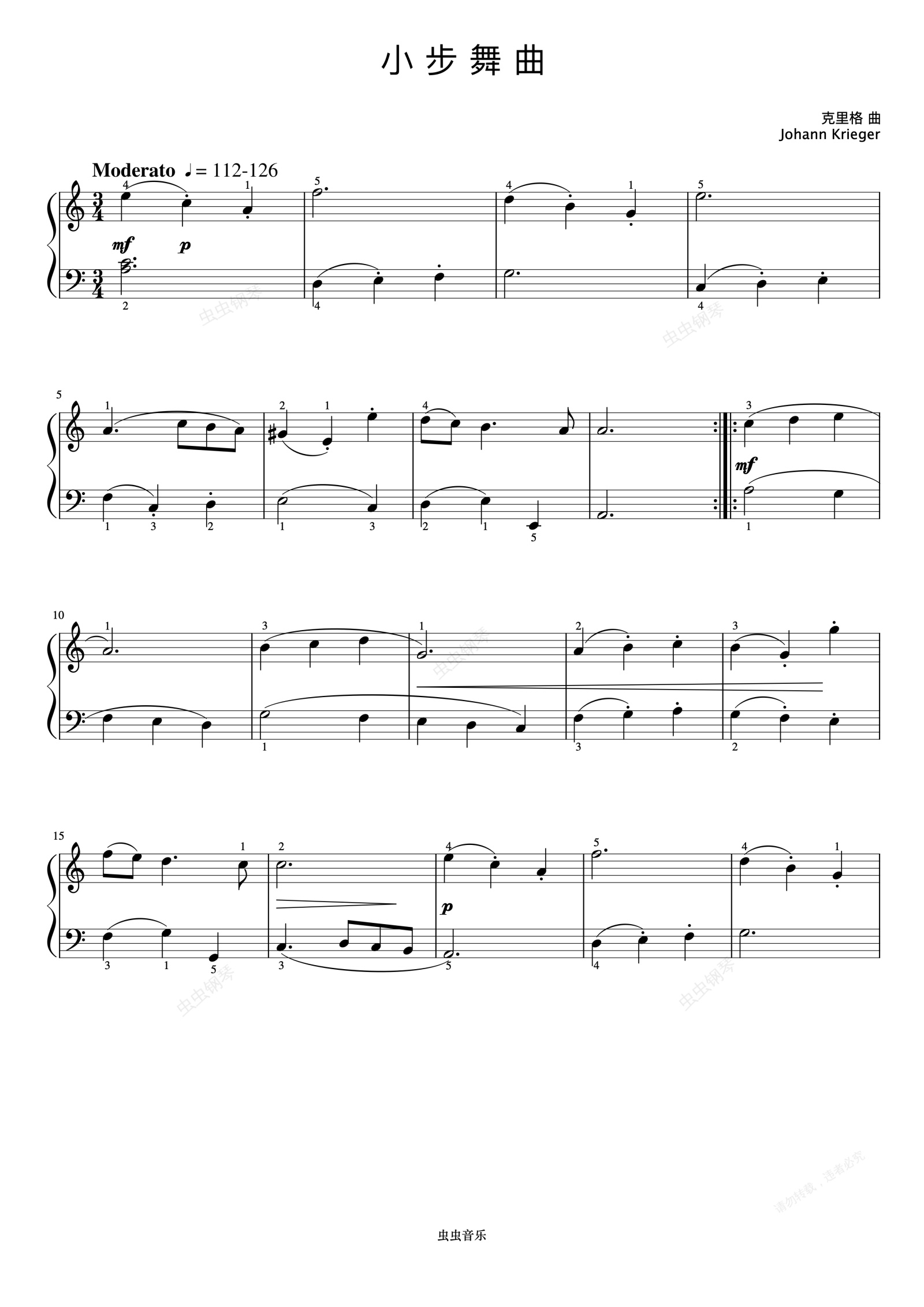 钢琴谱:1级 小步舞曲《上音钢琴考级曲目》