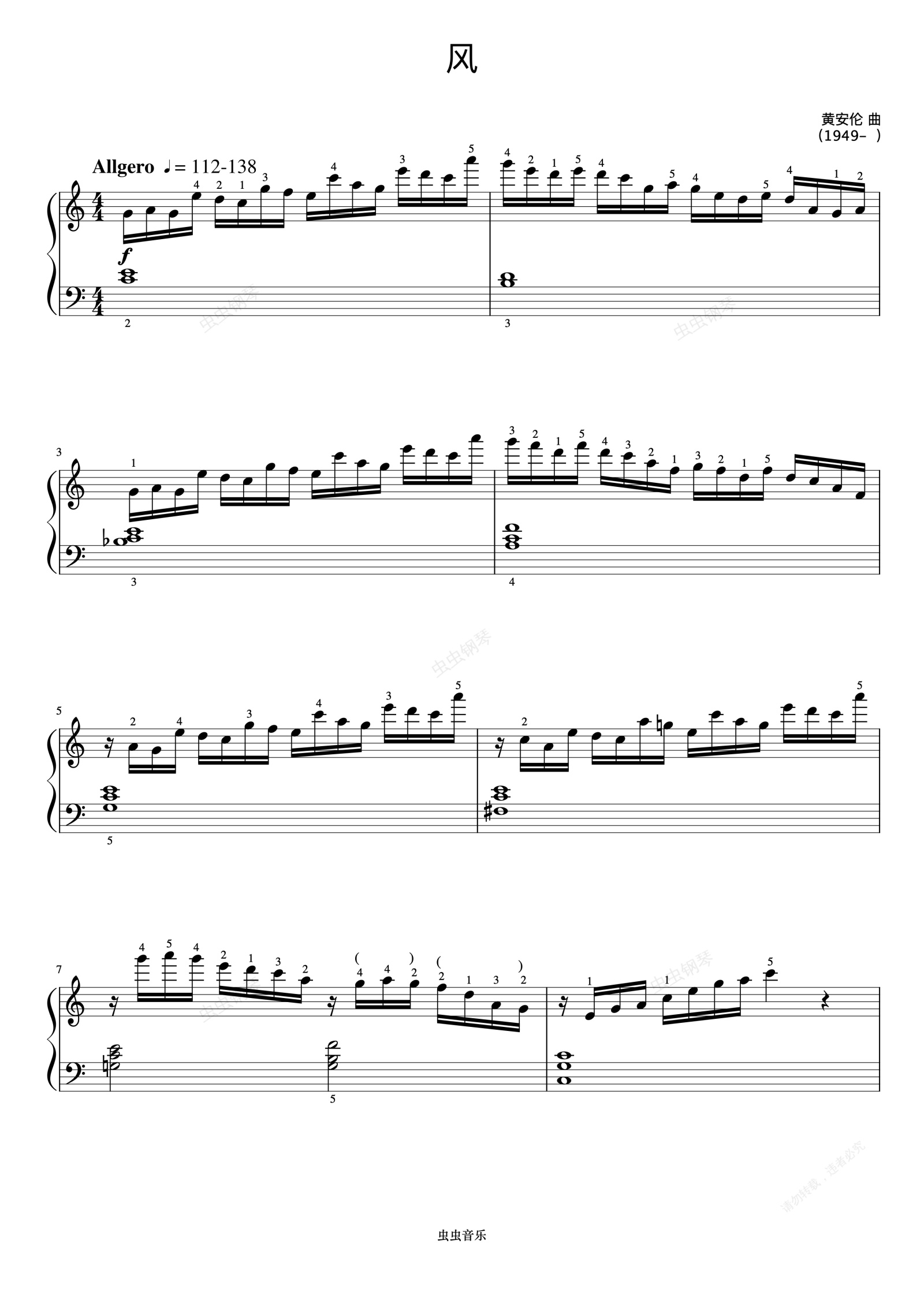 钢琴谱:5级 风《上音钢琴考级曲目》