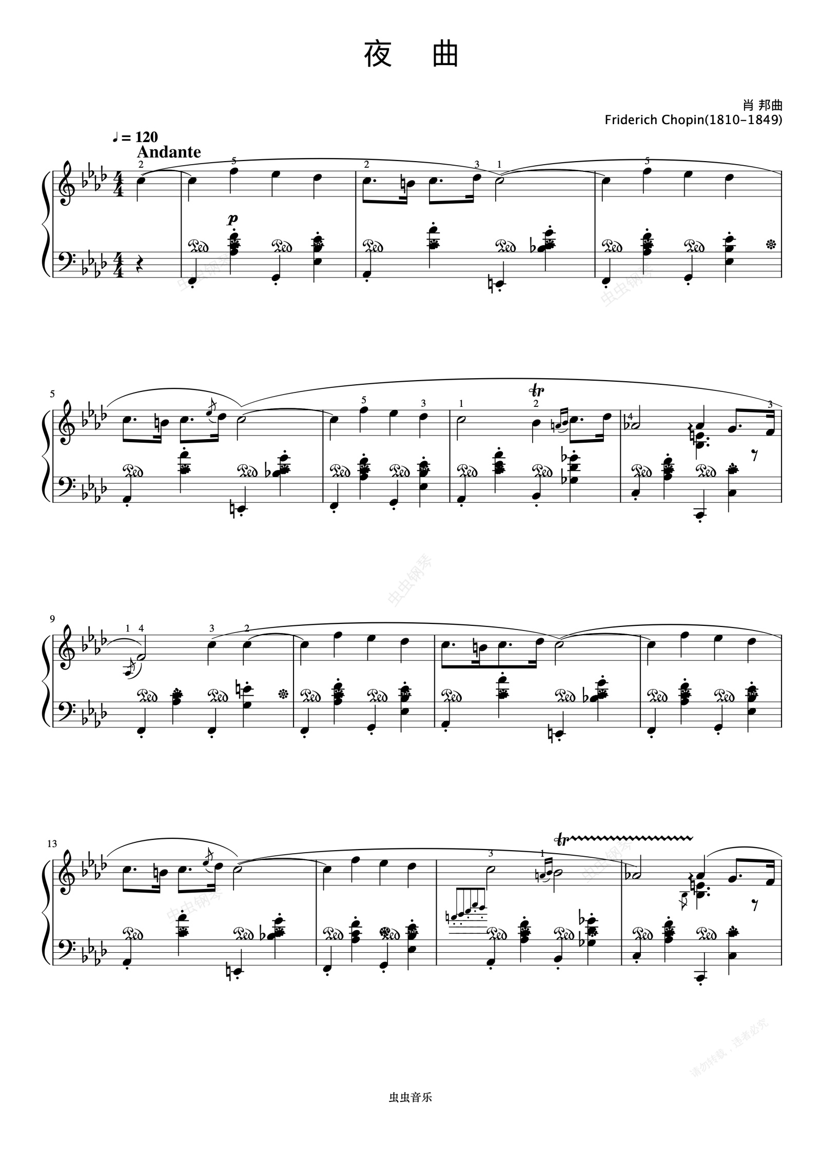 钢琴谱:9级 夜曲《上音钢琴考级曲目》