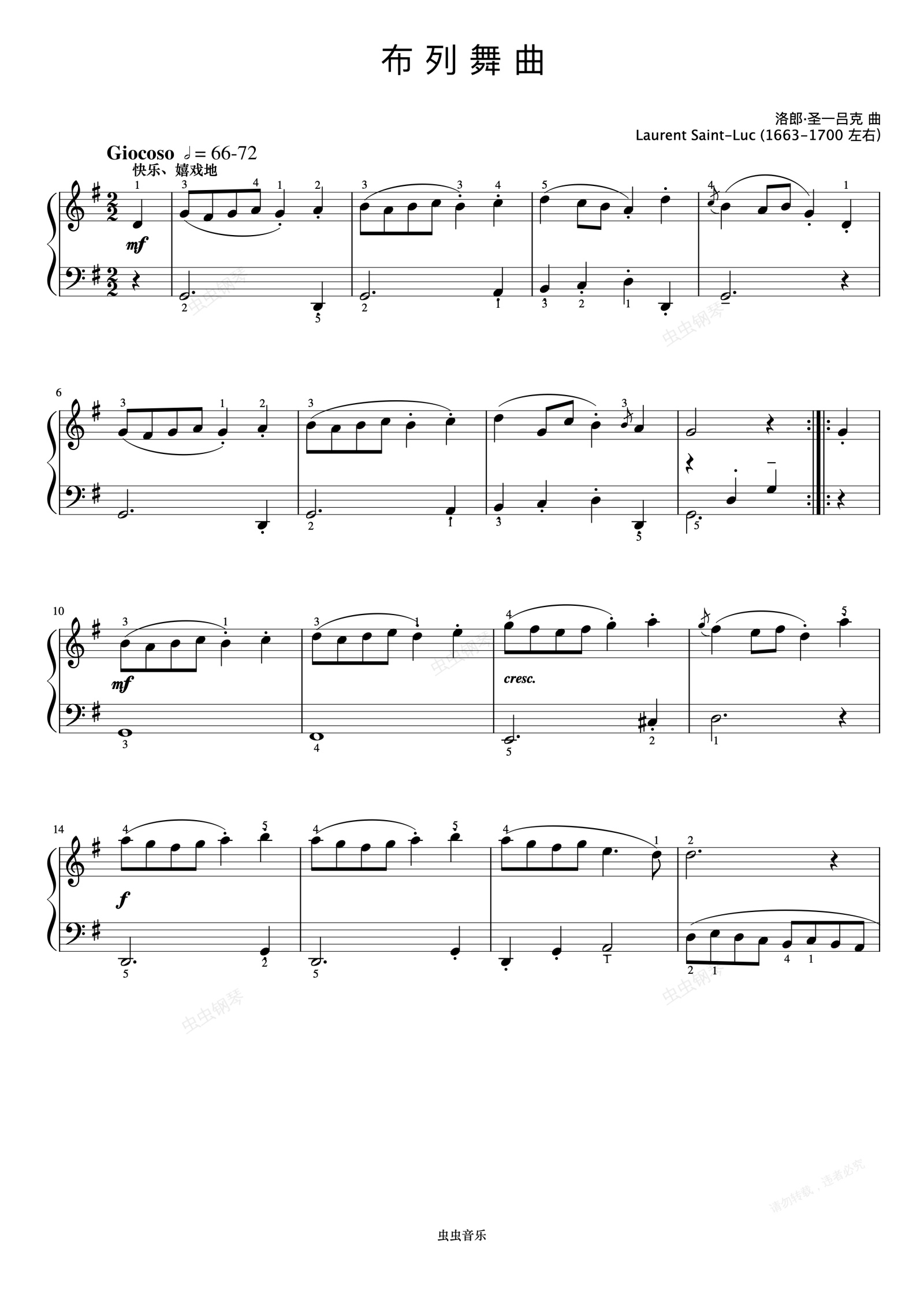 钢琴谱:2级 布列舞曲《上音钢琴考级曲目》