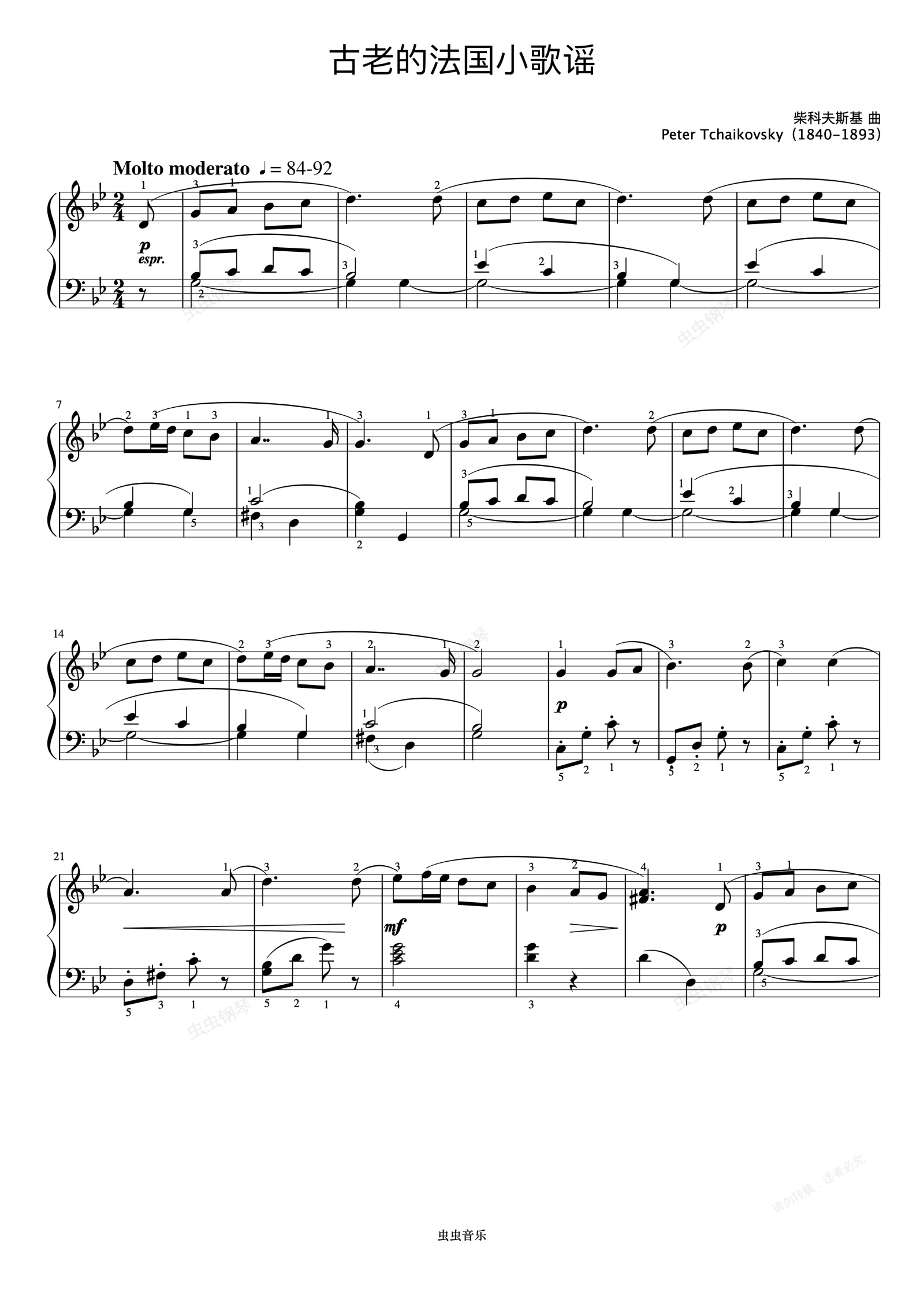 钢琴谱:3级 古老的法国小歌谣《上音钢琴考级曲目》