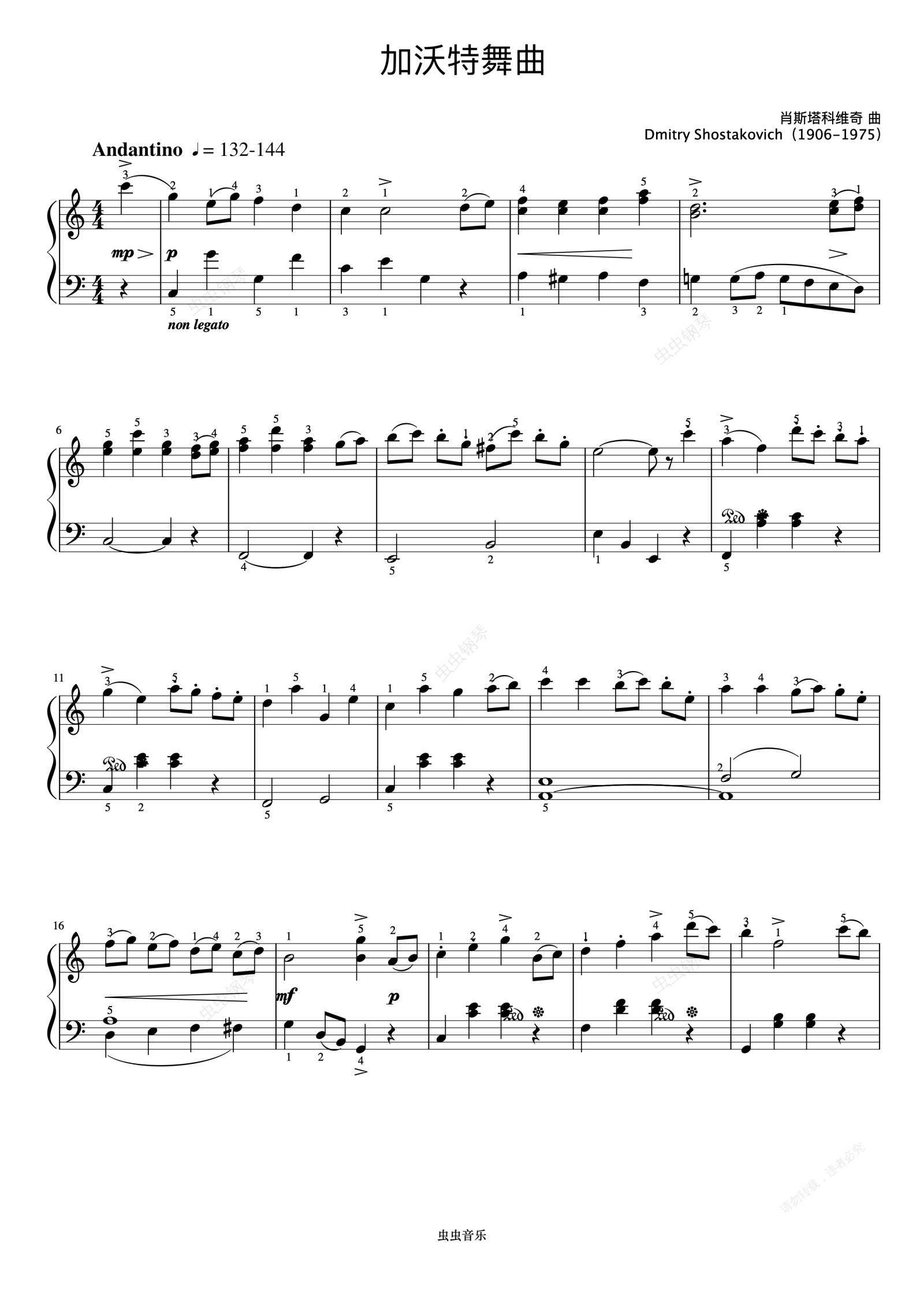 钢琴谱:4级 加沃特舞曲《上音钢琴考级曲目》