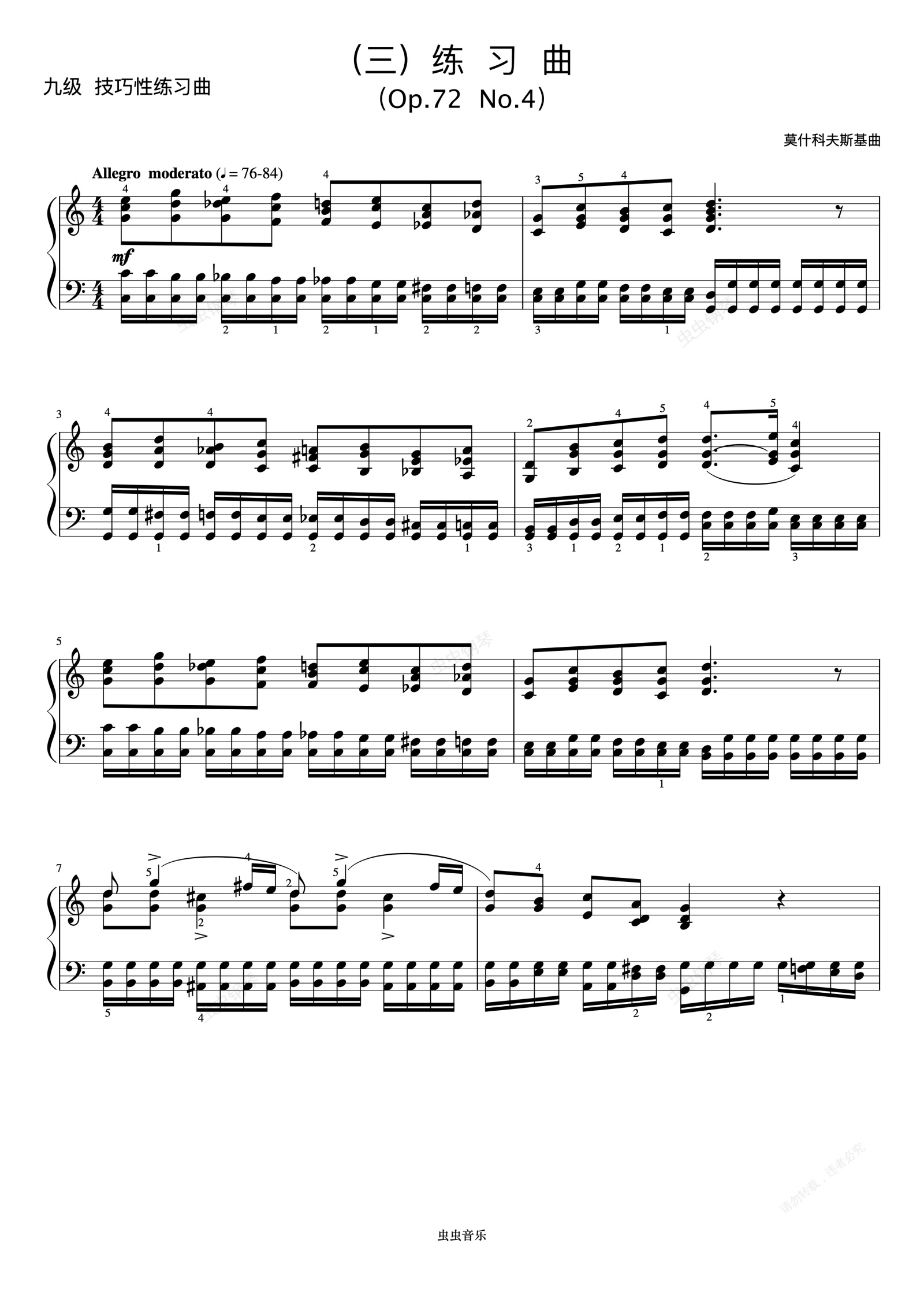 钢琴谱:9级 练习曲(OP.72 Np.40)《音协钢琴考级曲目 9-10级》