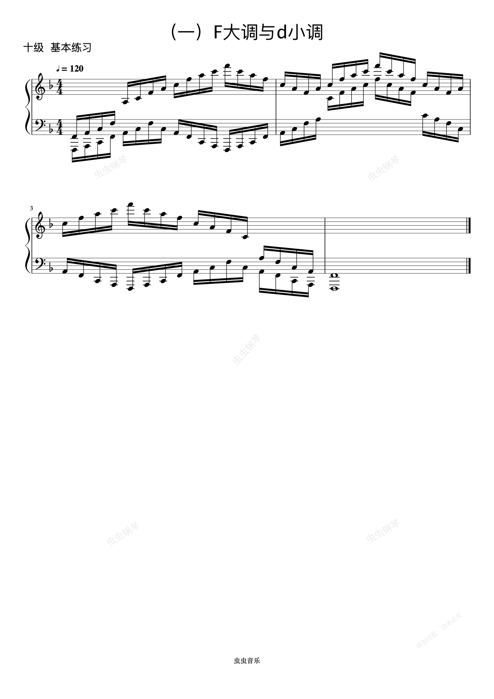 钢琴谱:10级 F大调琶音《音协钢琴考级曲目 9-10级》