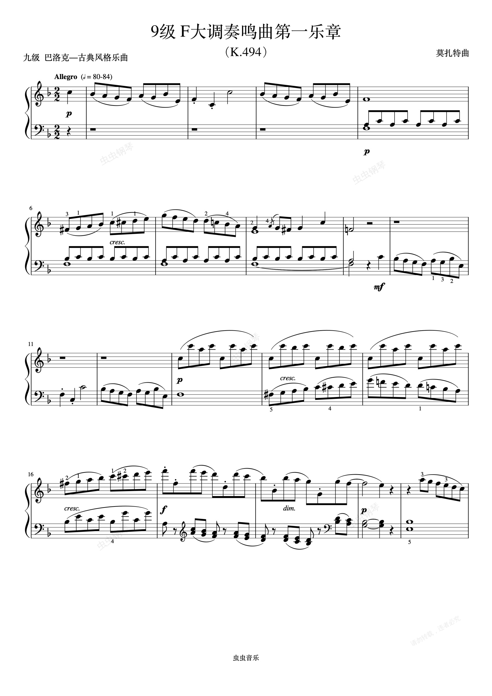 钢琴谱:9级 F大调奏鸣曲第一乐章《音协钢琴考级曲目 9-10级》