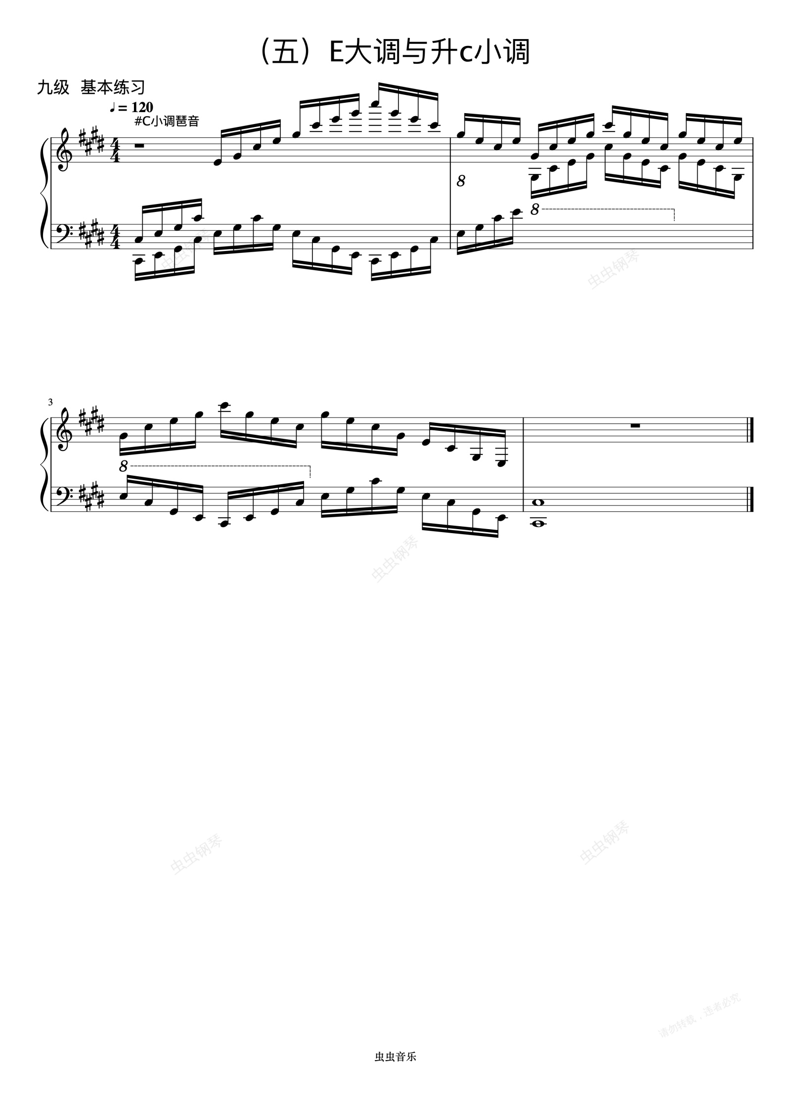 钢琴谱:9级 升c小调琶音《音协钢琴考级曲目 9-10级》