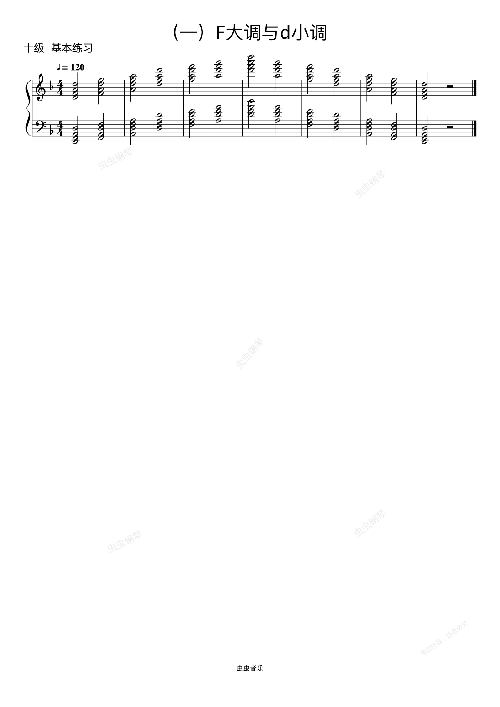 钢琴谱:10级 d小调主和弦《音协钢琴考级曲目 9-10级》