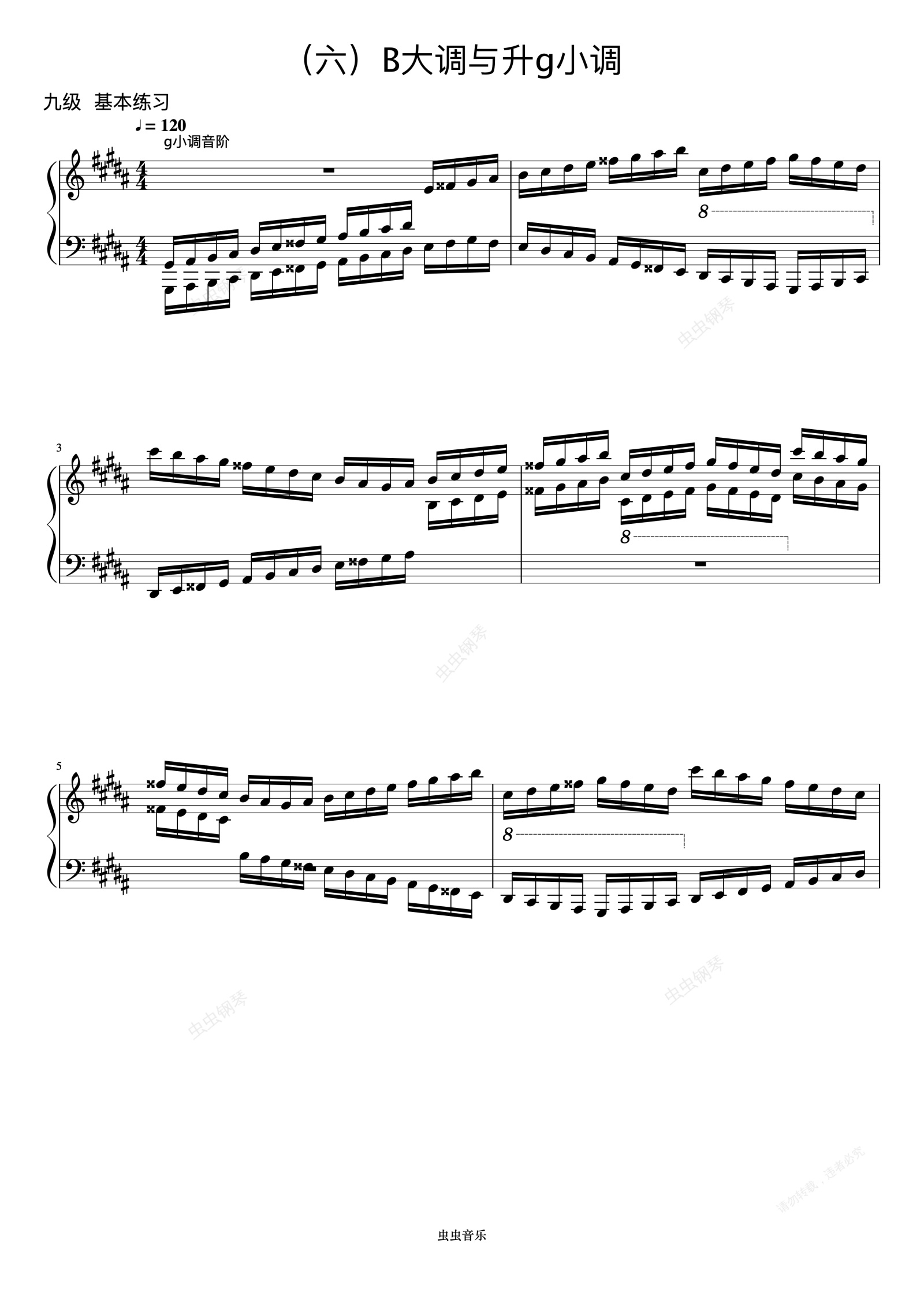 钢琴谱:9级 升g小调音阶《音协钢琴考级曲目 9-10级》