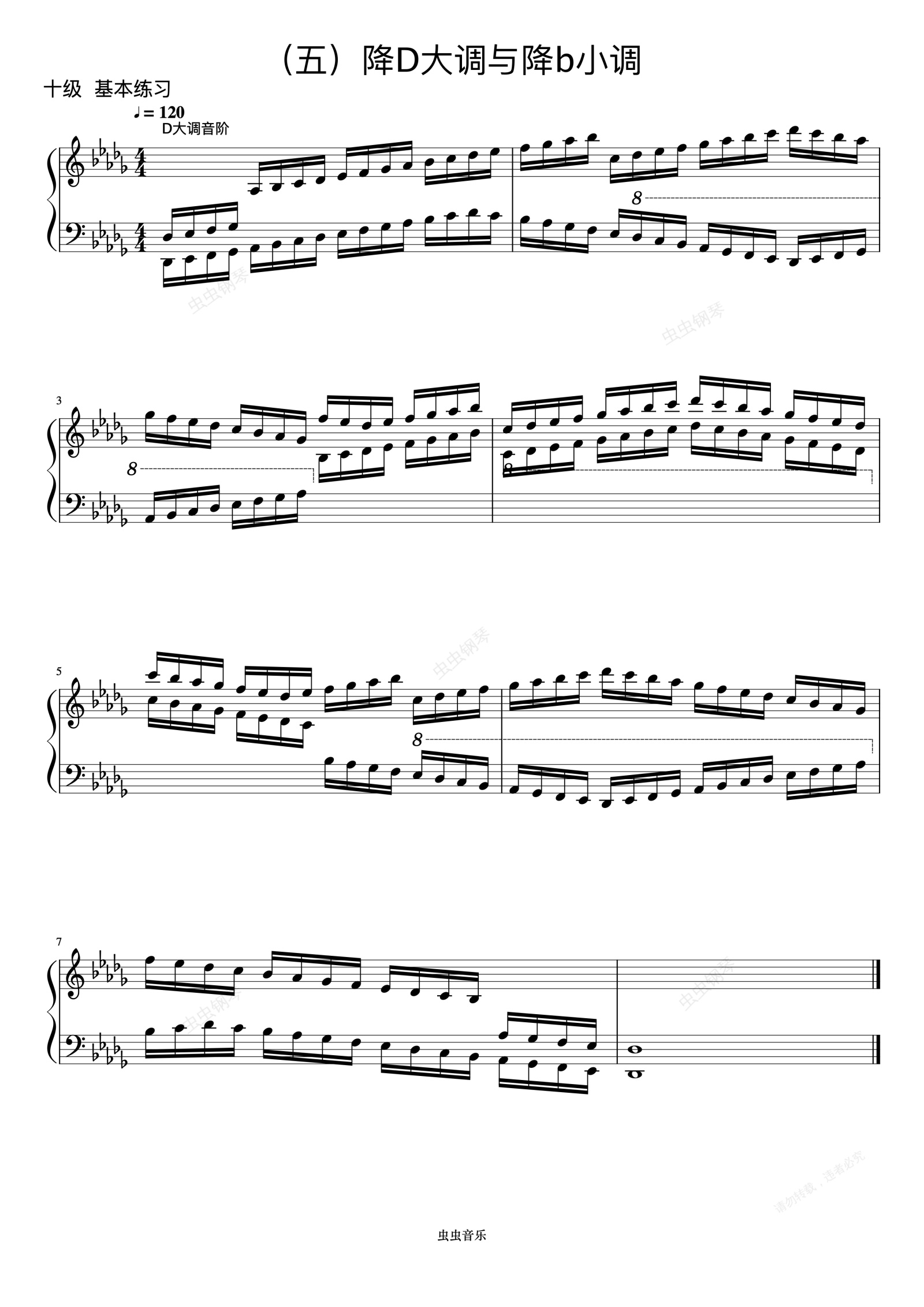 钢琴谱:10级 降D大调音阶《音协钢琴考级曲目 9-10级》