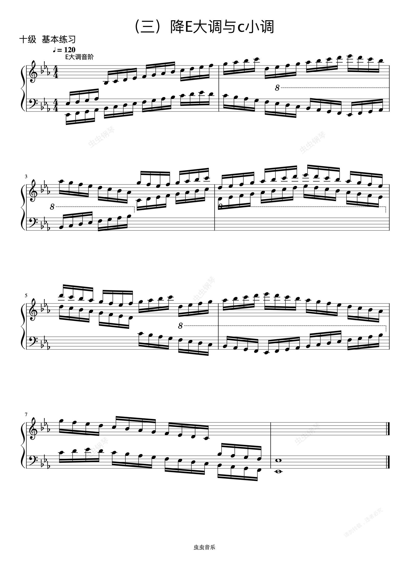 钢琴谱:10级 降E大调音阶《音协钢琴考级曲目 9-10级》