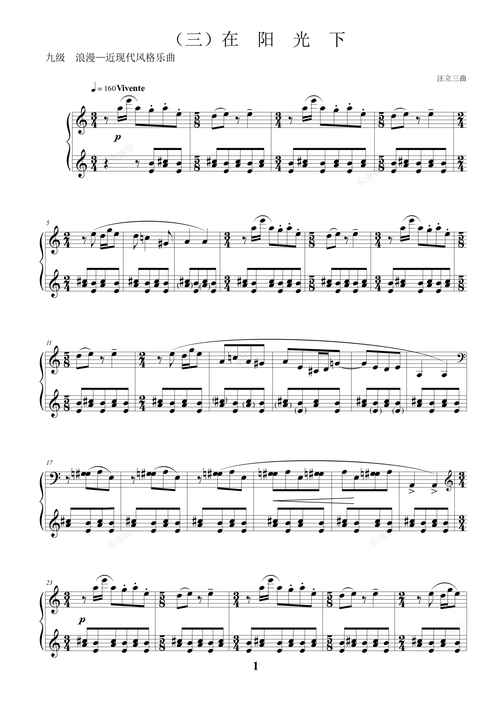 钢琴谱:9级 在阳光下《音协钢琴考级曲目 9-10级》