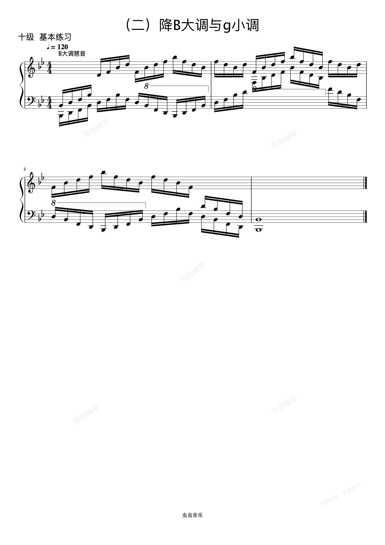 钢琴谱:10级 降B大调琶音《音协钢琴考级曲目 9-10级》
