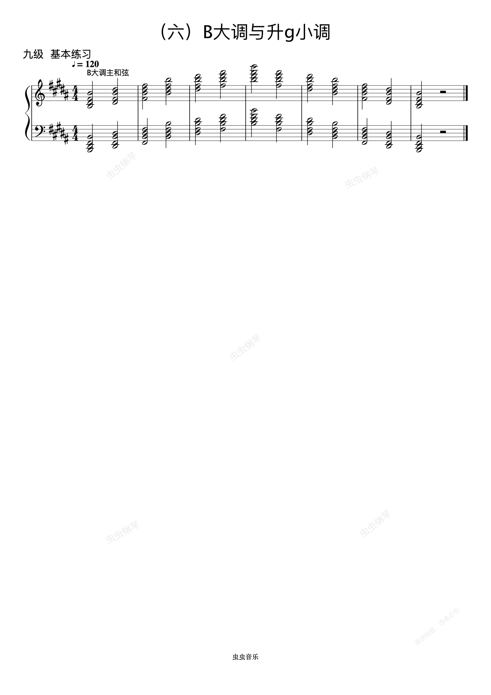 钢琴谱:9级 B大调主和弦《音协钢琴考级曲目 9-10级》