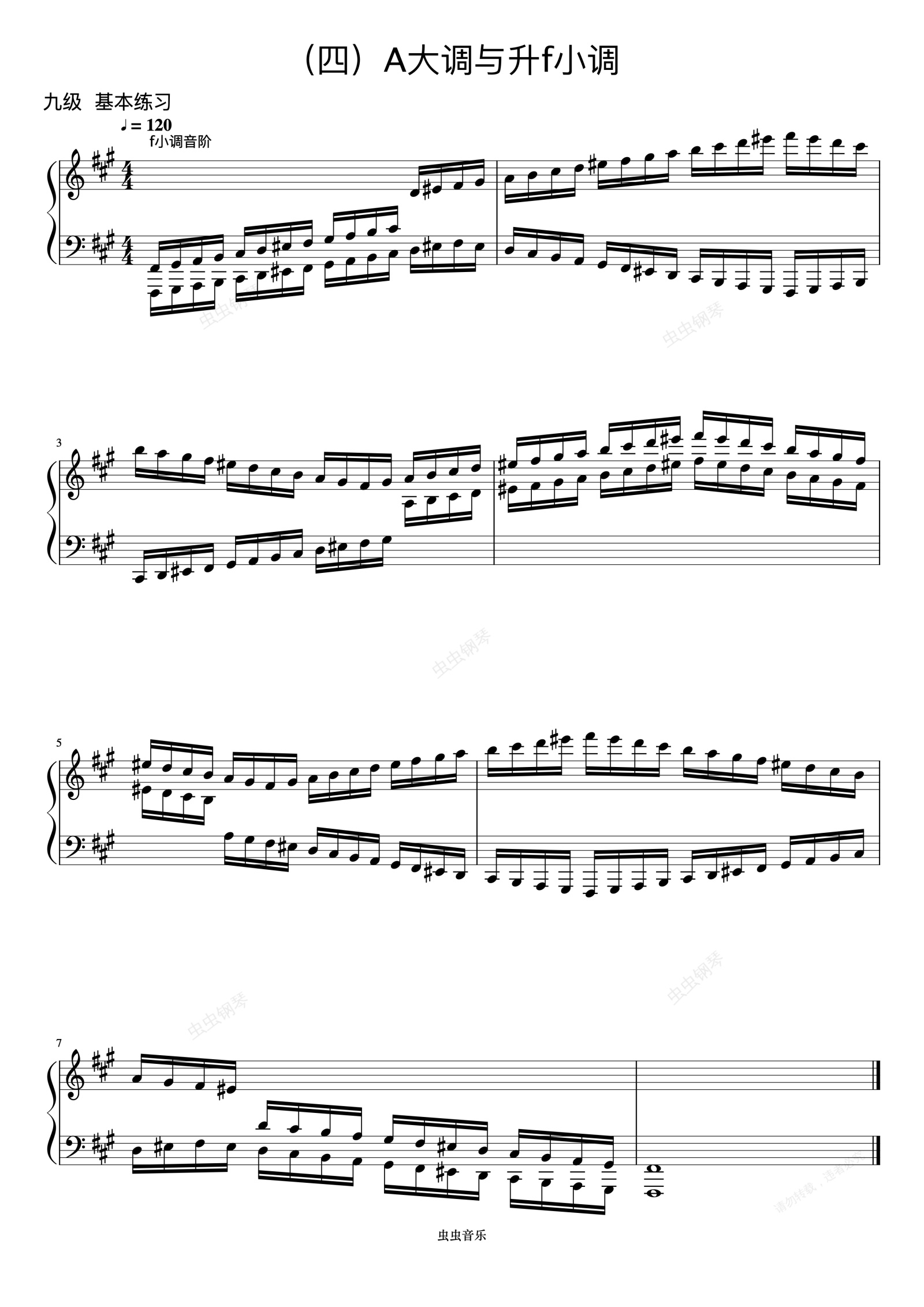 钢琴谱:9级 升f小调音阶《音协钢琴考级曲目 9-10级》