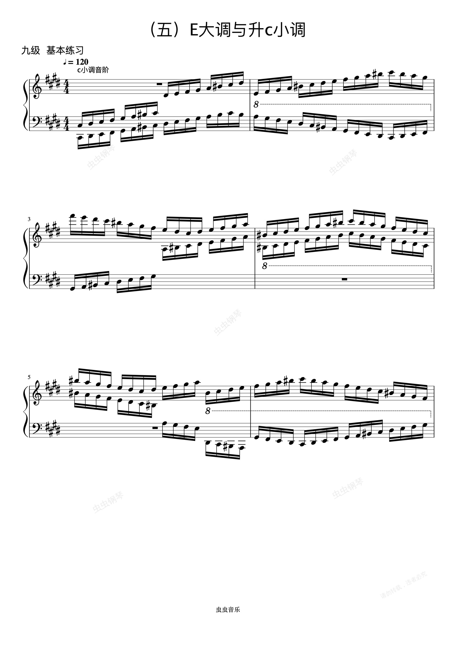 钢琴谱:9级 升c小调音阶《音协钢琴考级曲目 9-10级》