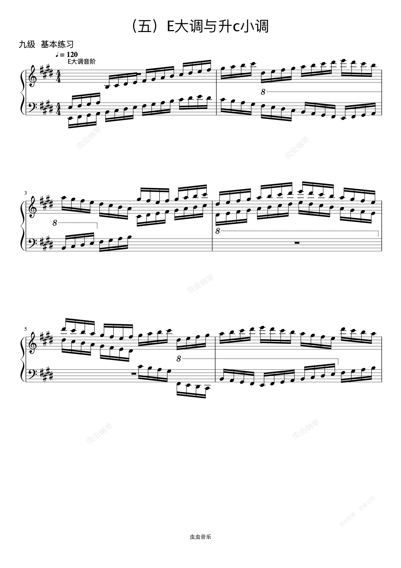 钢琴谱:9级 E大调音阶《音协钢琴考级曲目 9-10级》