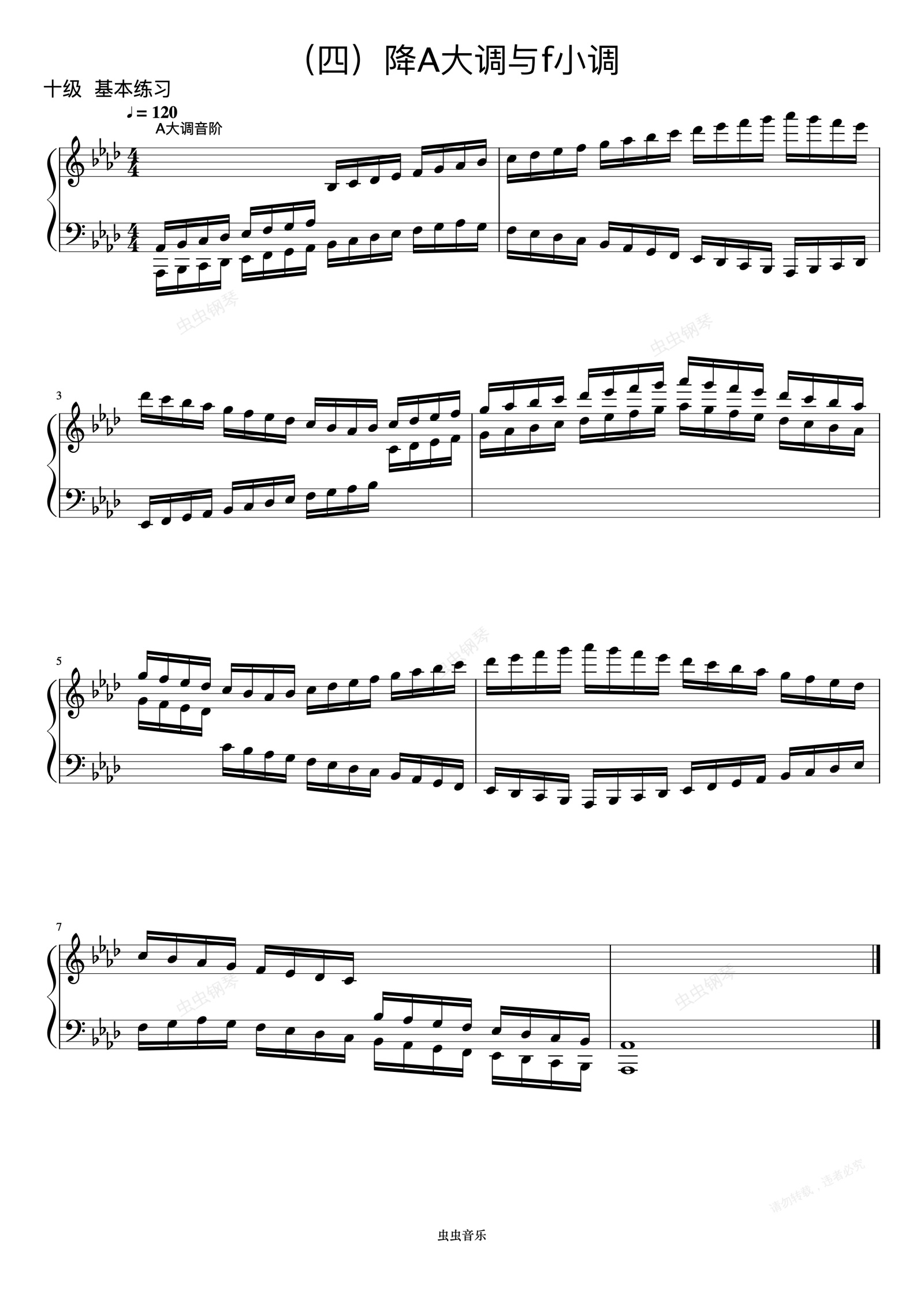 钢琴谱:10级 降A大调音阶《音协钢琴考级曲目 9-10级》