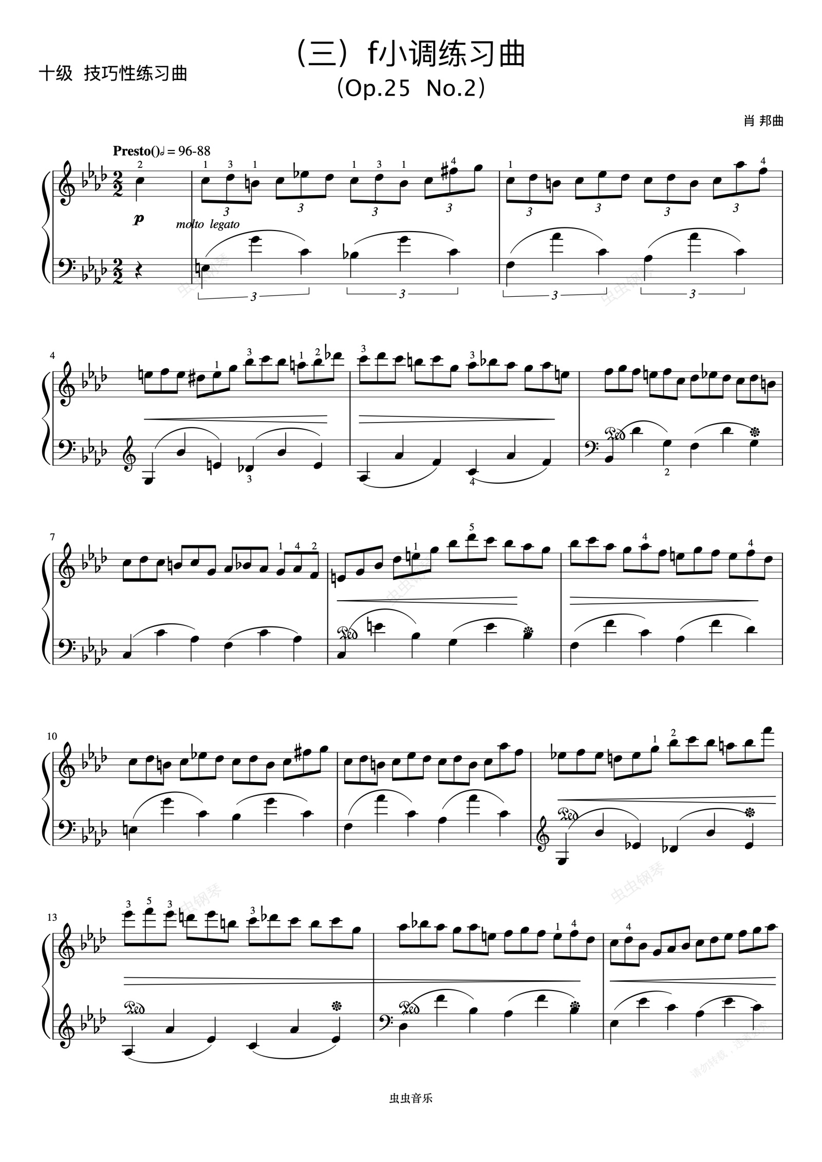 钢琴谱:10级 f小调练习曲Op.25 No.2《音协钢琴考级曲目 9-10级》