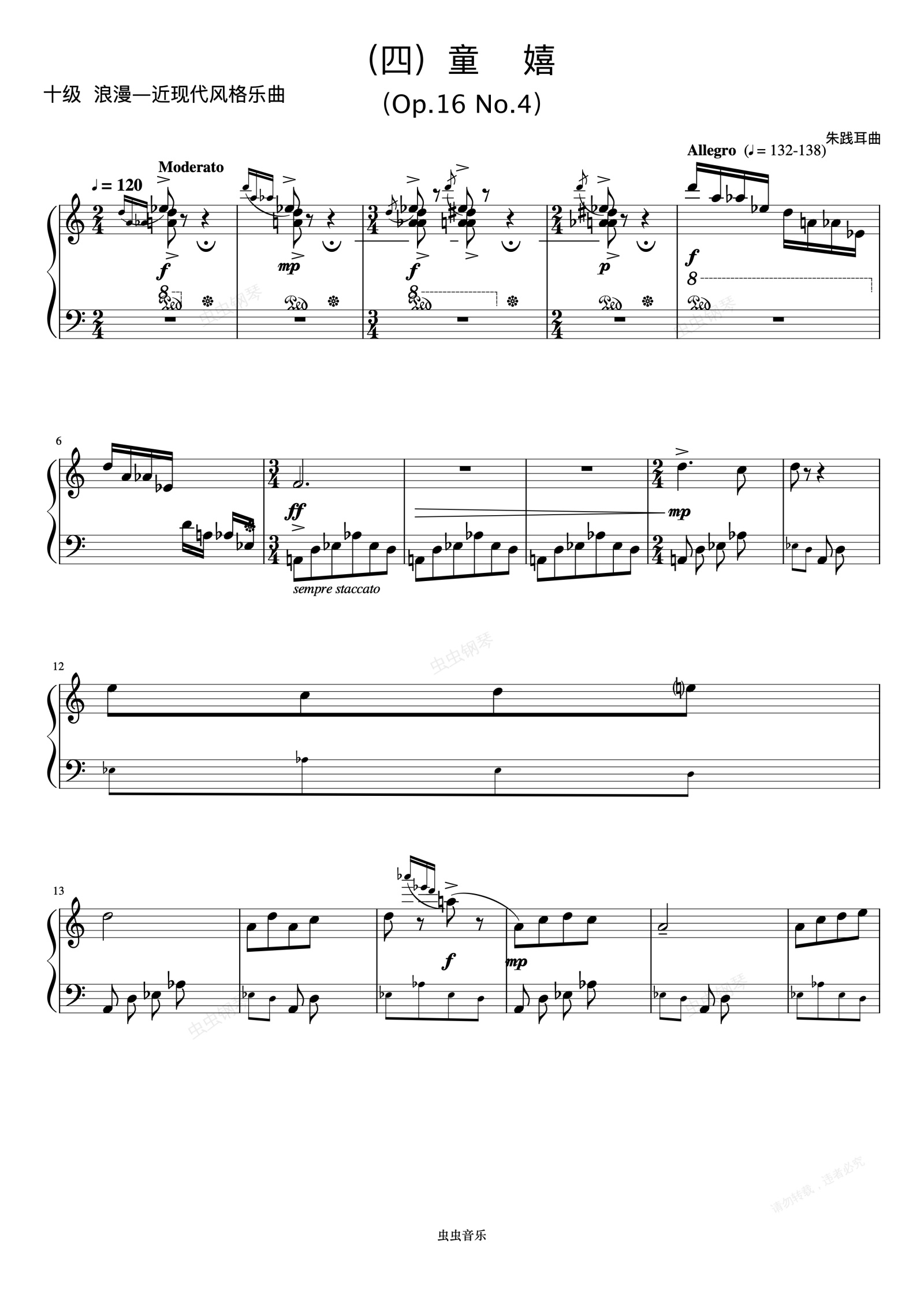 钢琴谱:10级 童嬉《音协钢琴考级曲目 9-10级》
