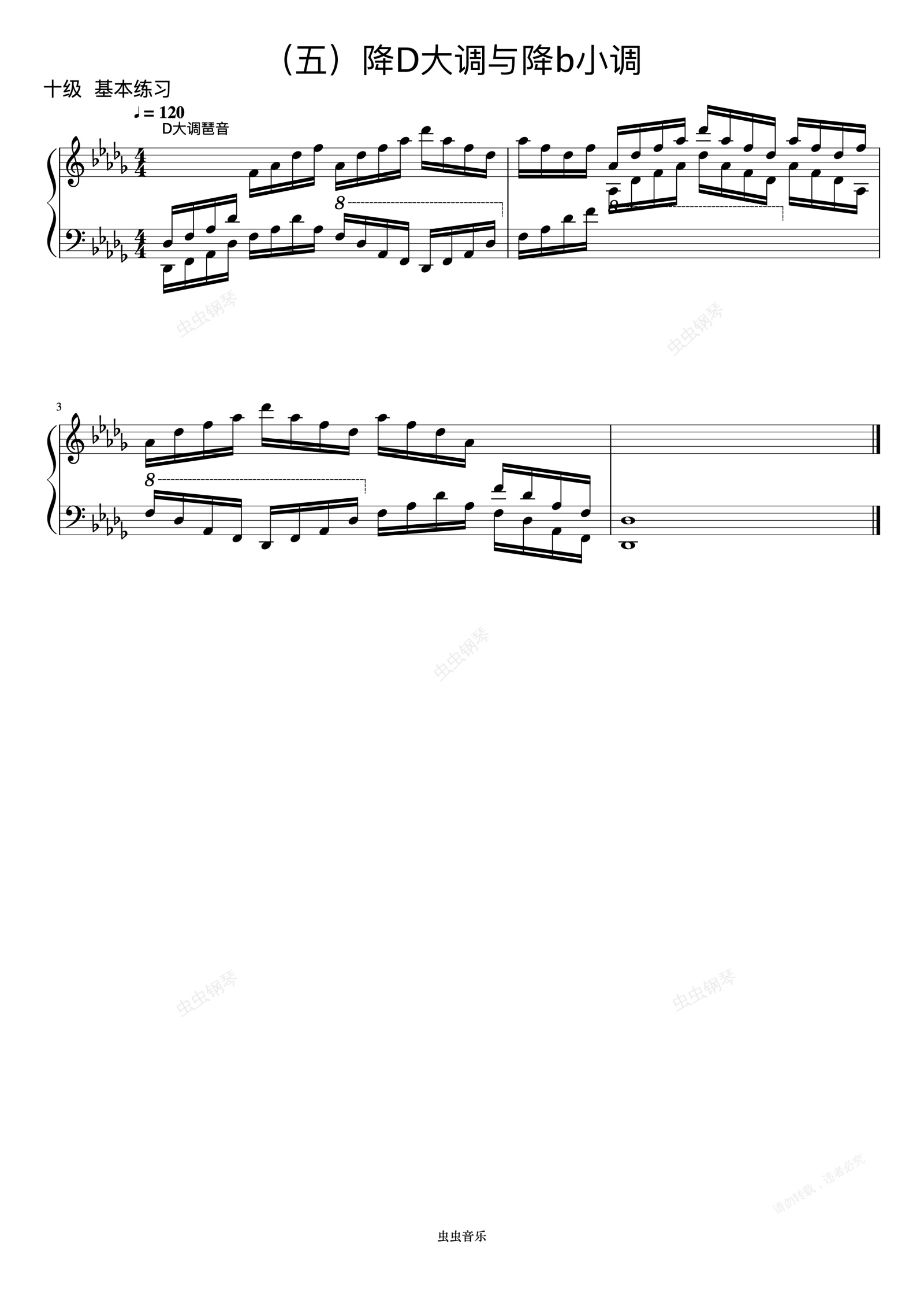 钢琴谱:10级 降D大调琶音《音协钢琴考级曲目 9-10级》