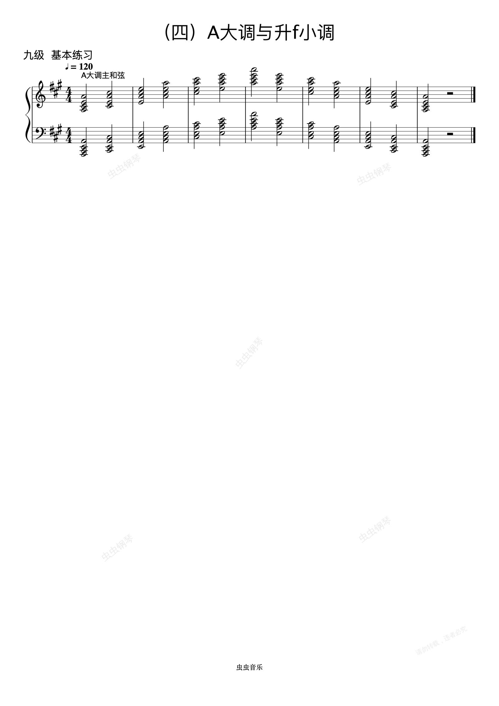 钢琴谱:9级 A大调主和弦《音协钢琴考级曲目 9-10级》