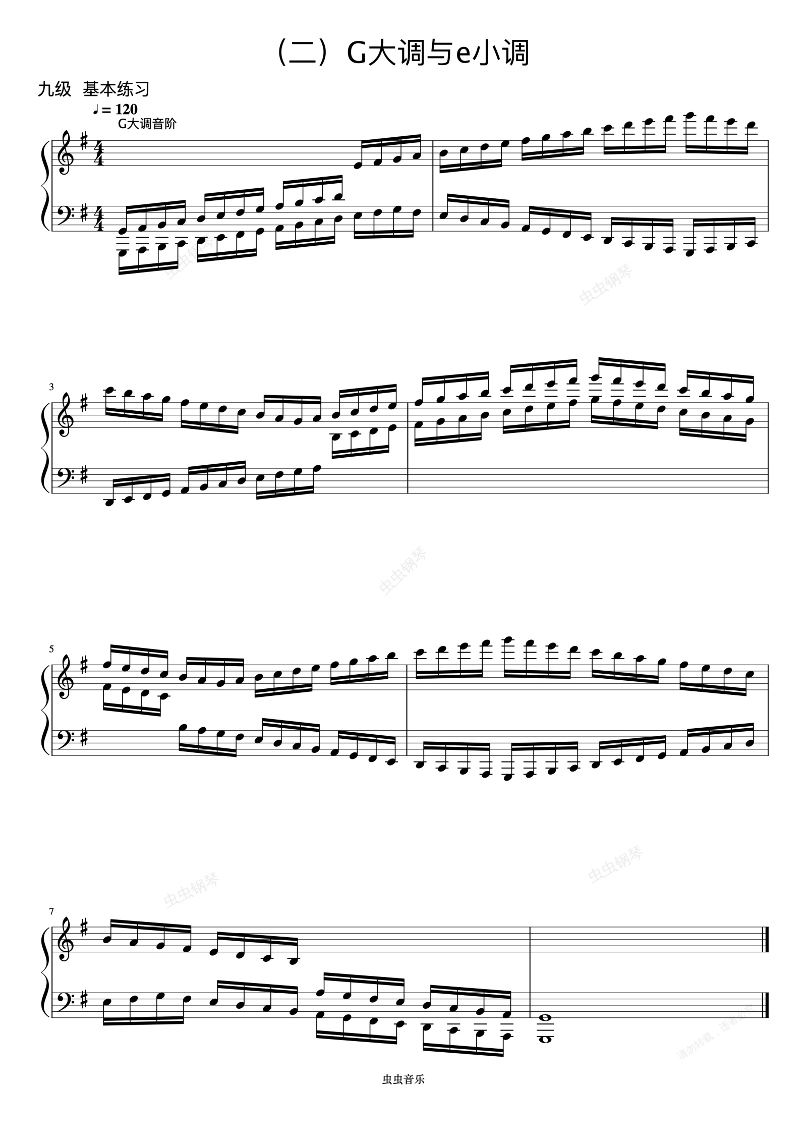 钢琴谱:9级 G大调音阶《音协钢琴考级曲目 9-10级》