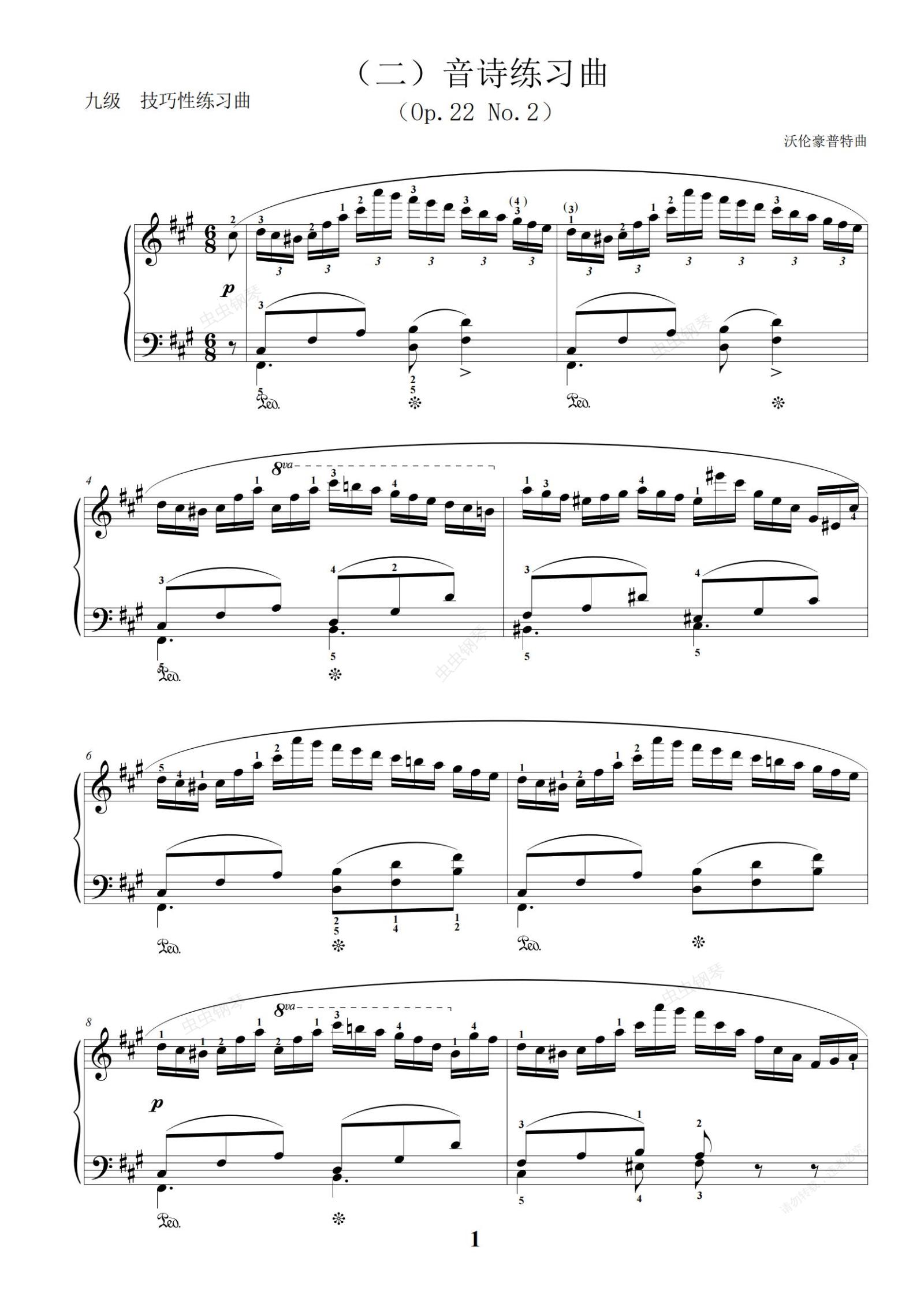 钢琴谱:9级 音诗练习曲(OP.22 No.2)《音协钢琴考级曲目 9-10级》